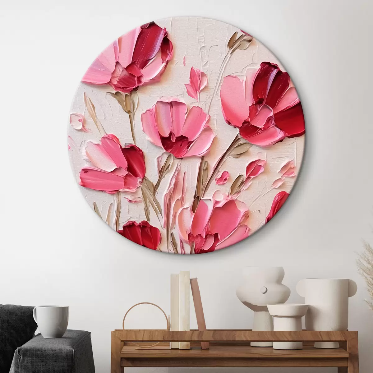 Кругла картина Рожеві квіти r42318