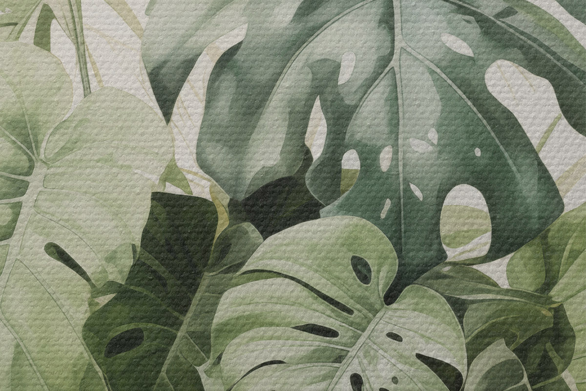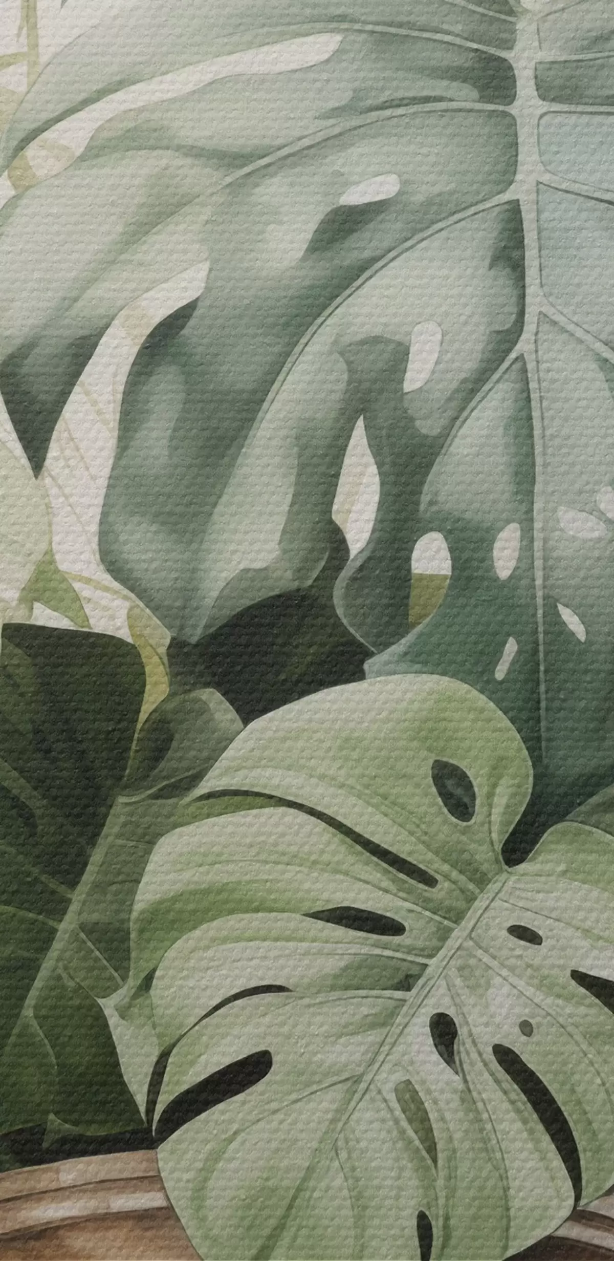 Кругла картина Листя тропічної монстери на колоні з імітацією акварелі r42351