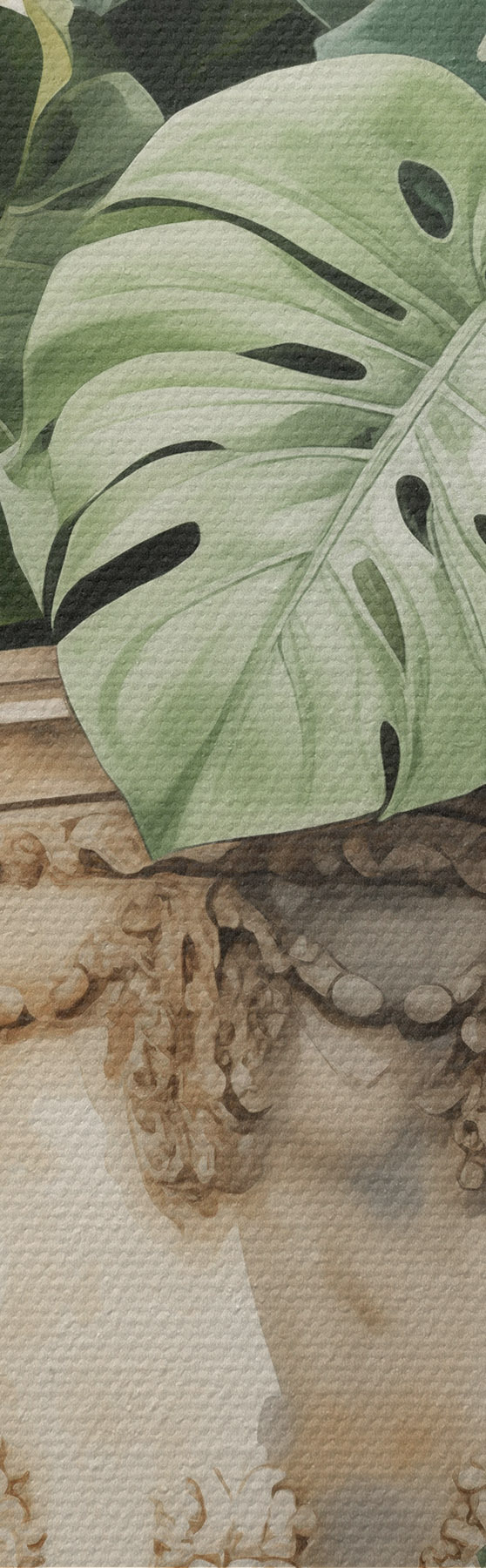 Кругла картина Листя тропічної монстери на колоні з імітацією акварелі Nr r42351