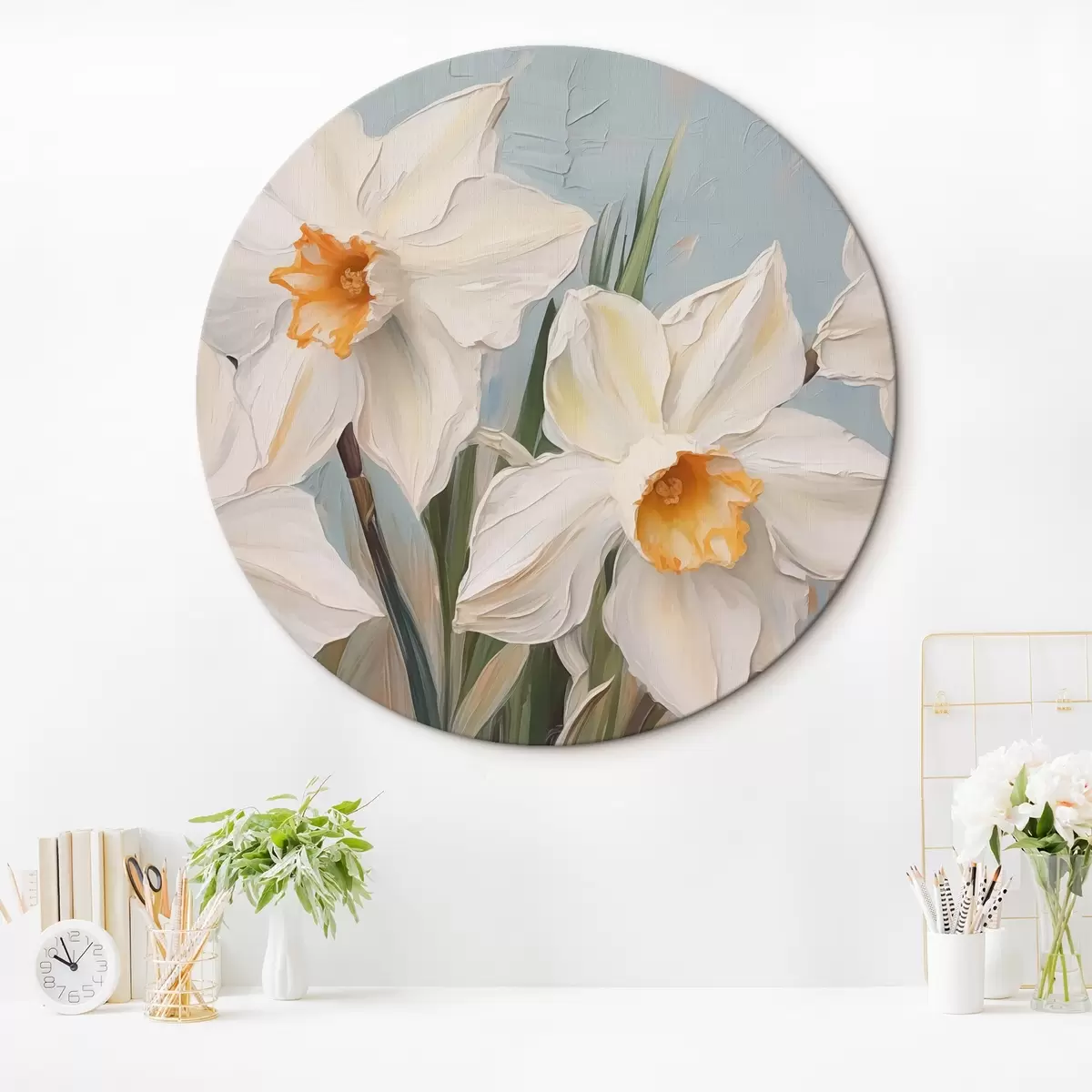 Кругла картина Білі нарциси великі імітація живопису Nr r42355