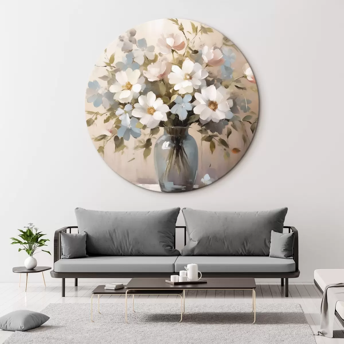 Кругла картина Букет квітів та гілочок у вазі з імітацією живопису Nr r42356