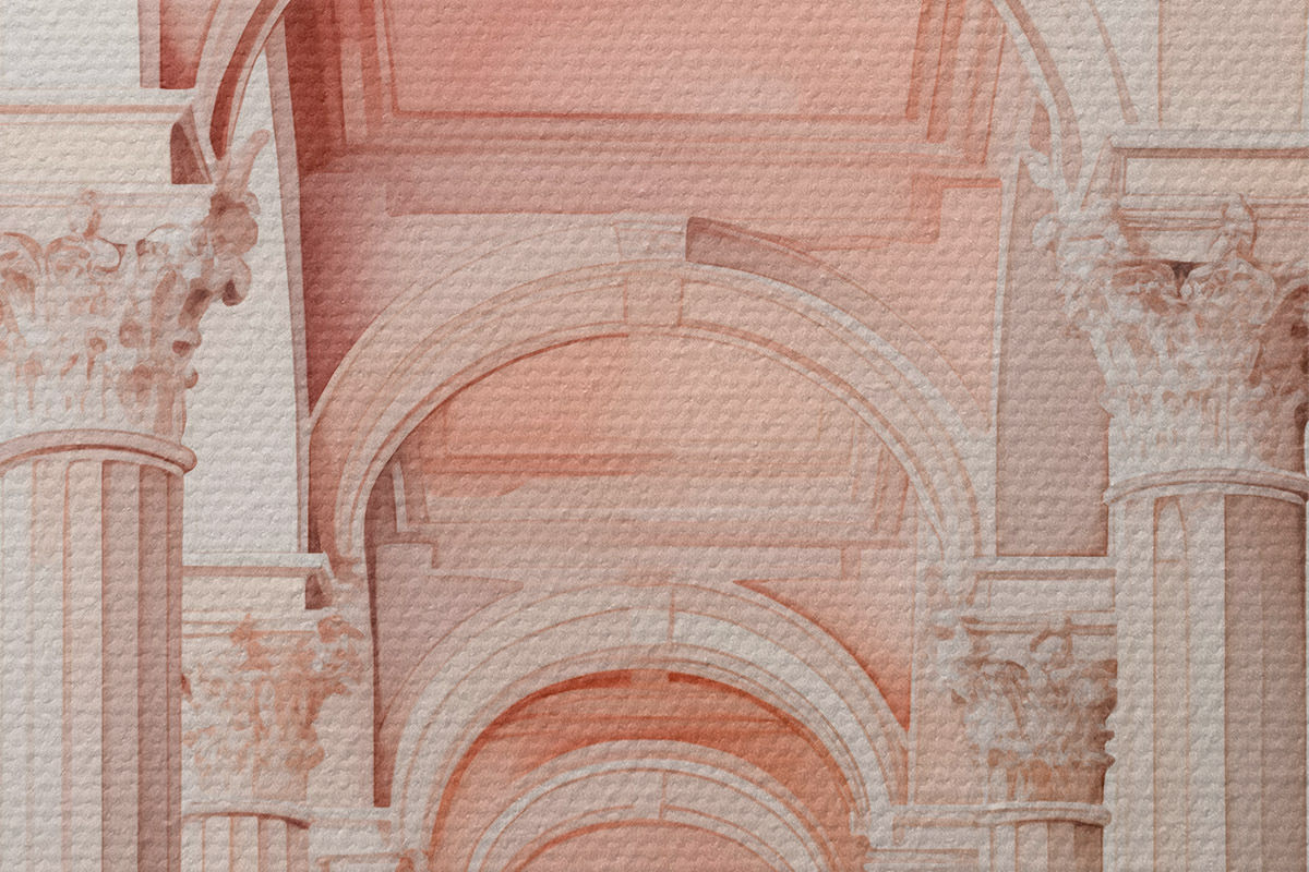 Кругла картина Архітектурна споруда з колонами, що імітують акварель r42361