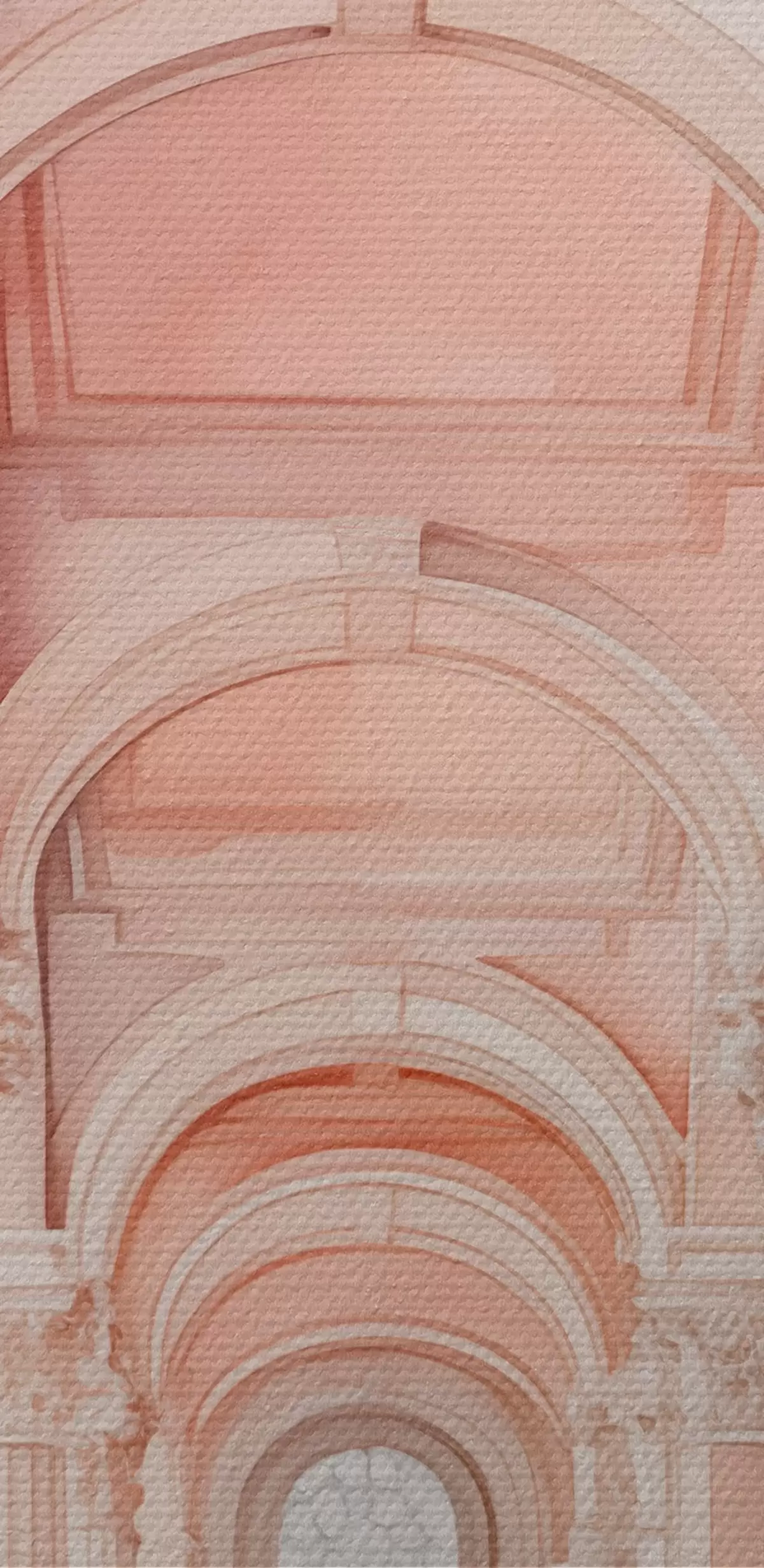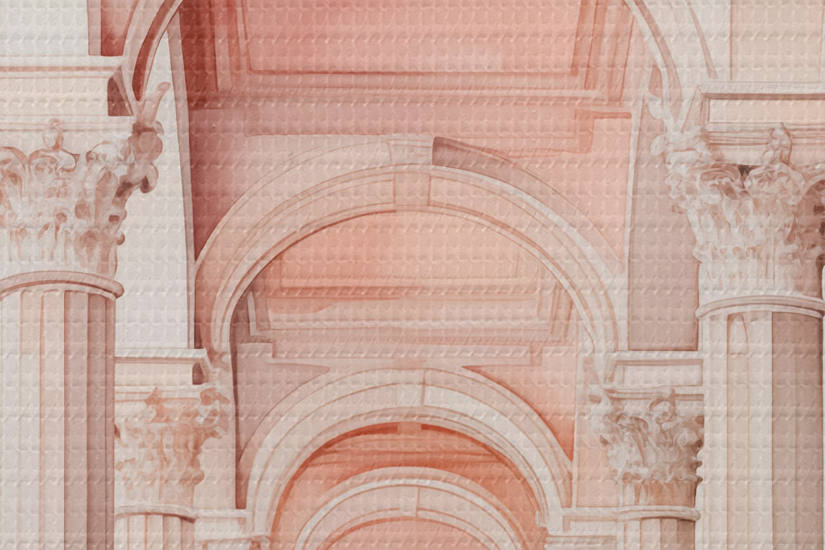 Кругла картина Архітектурна споруда з колонами, що імітують акварель Nr r42361