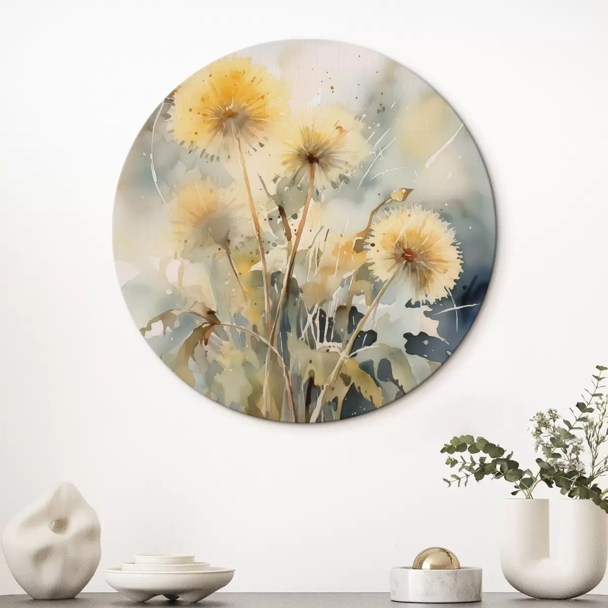 Кругла картина Кульбаби імітація розмитої акварелі Nr r42369
