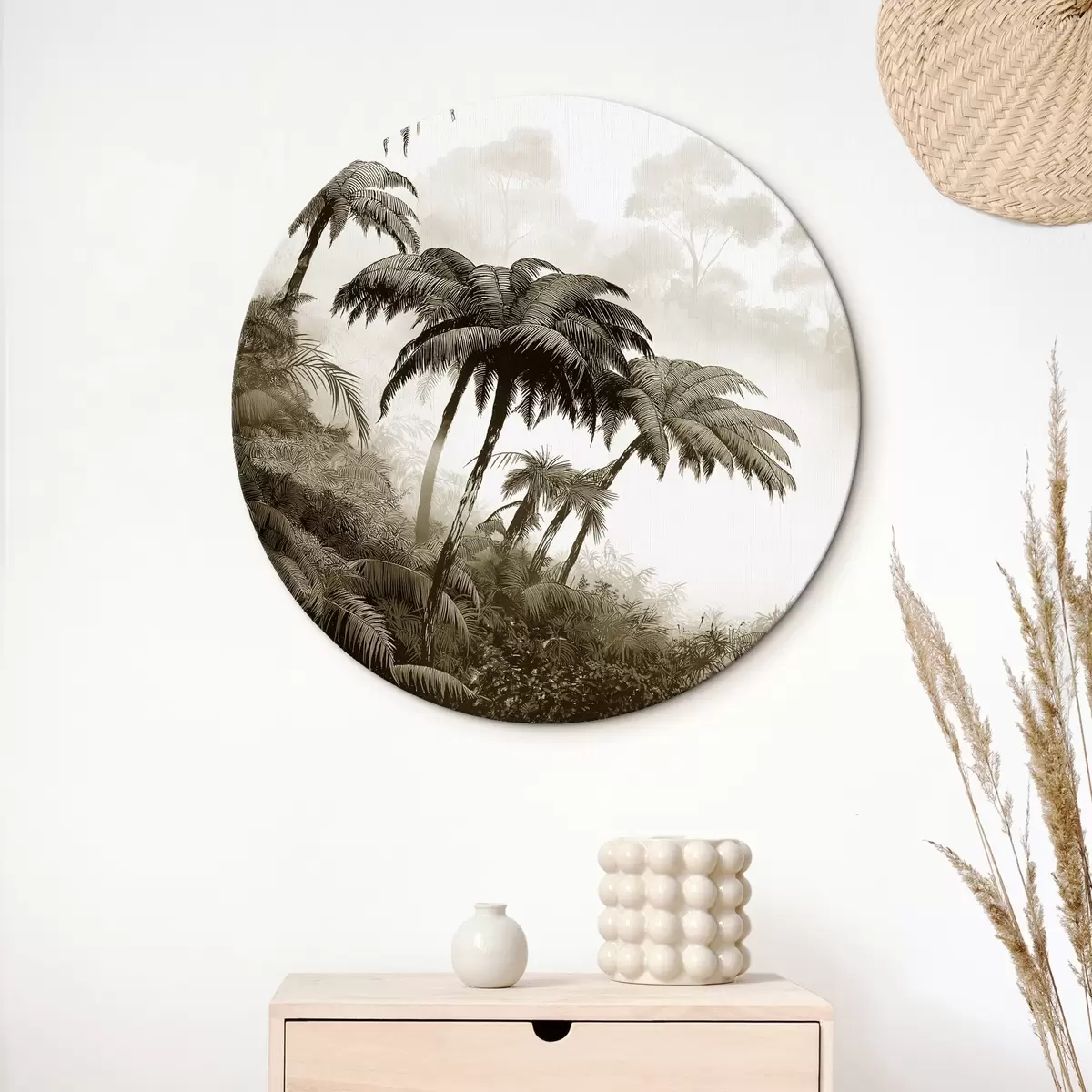 Кругла картина Джунглі в тумані, пальми, природа, природа, бежеві кольори Nr r42372