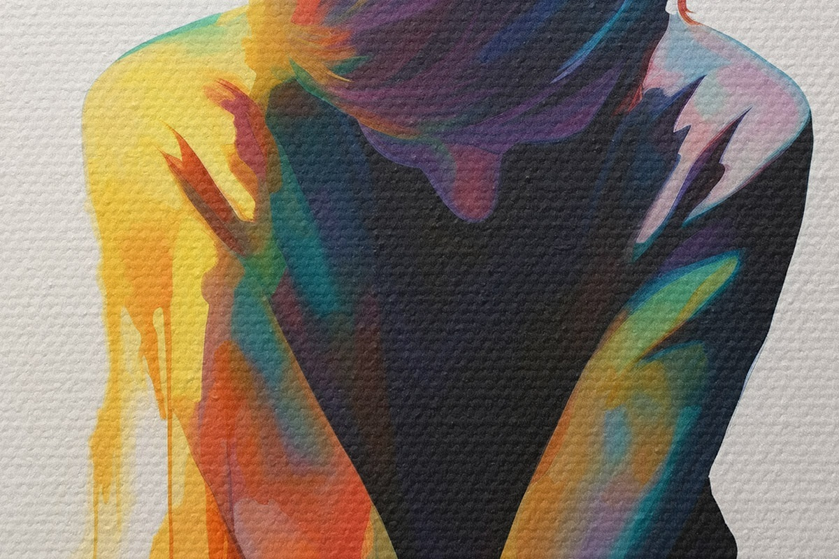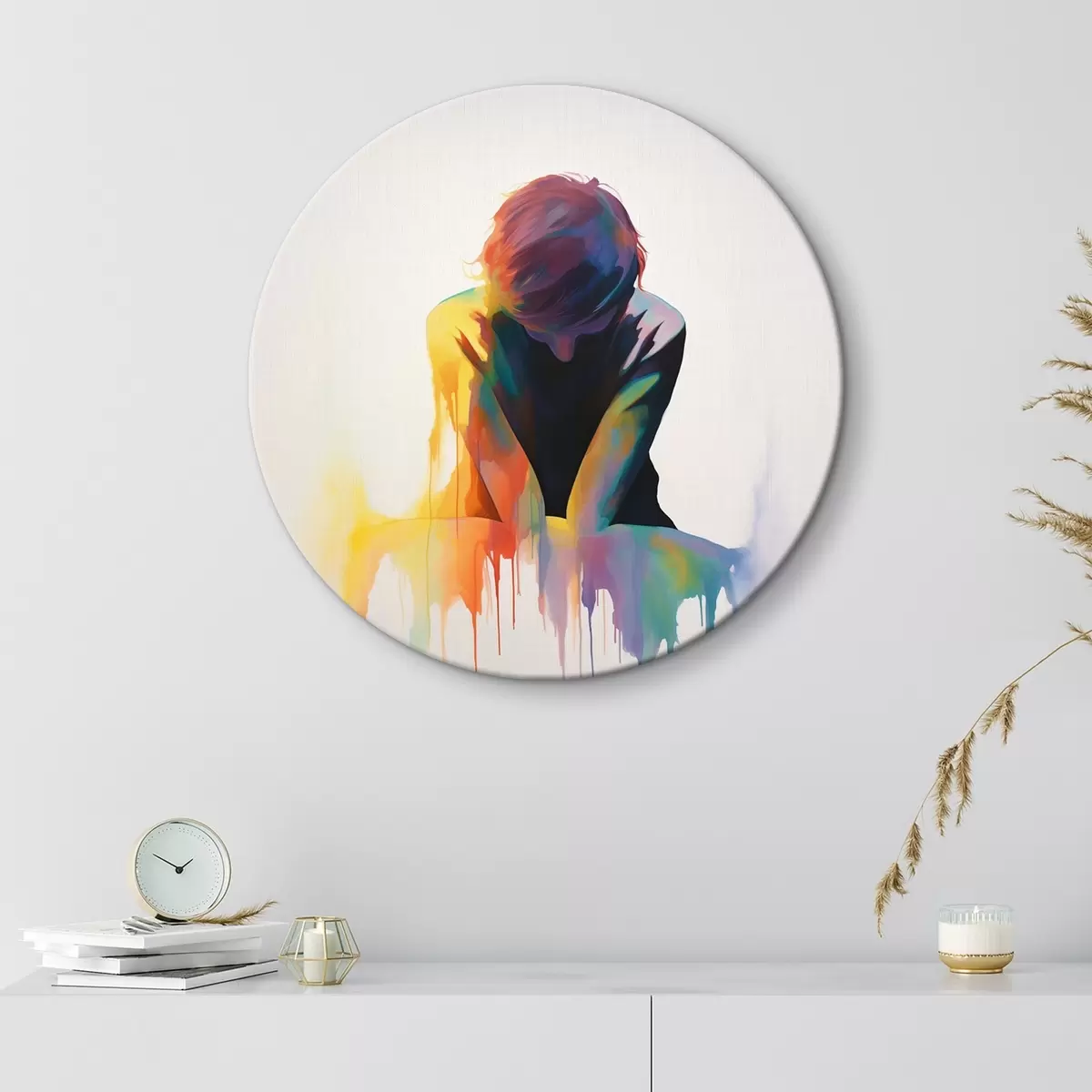 Кругла картина Силует хлопця з фарбами Nr r42381