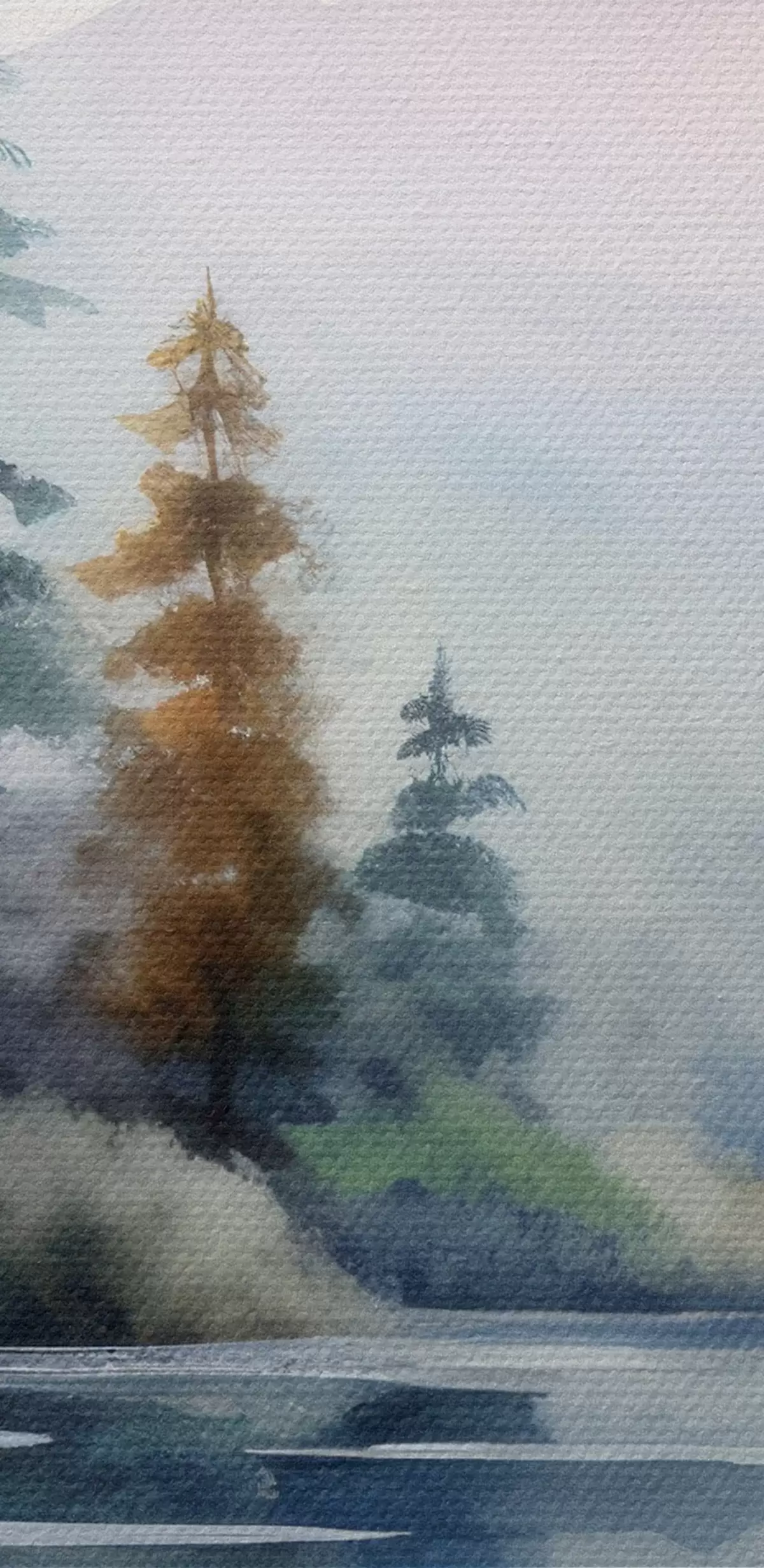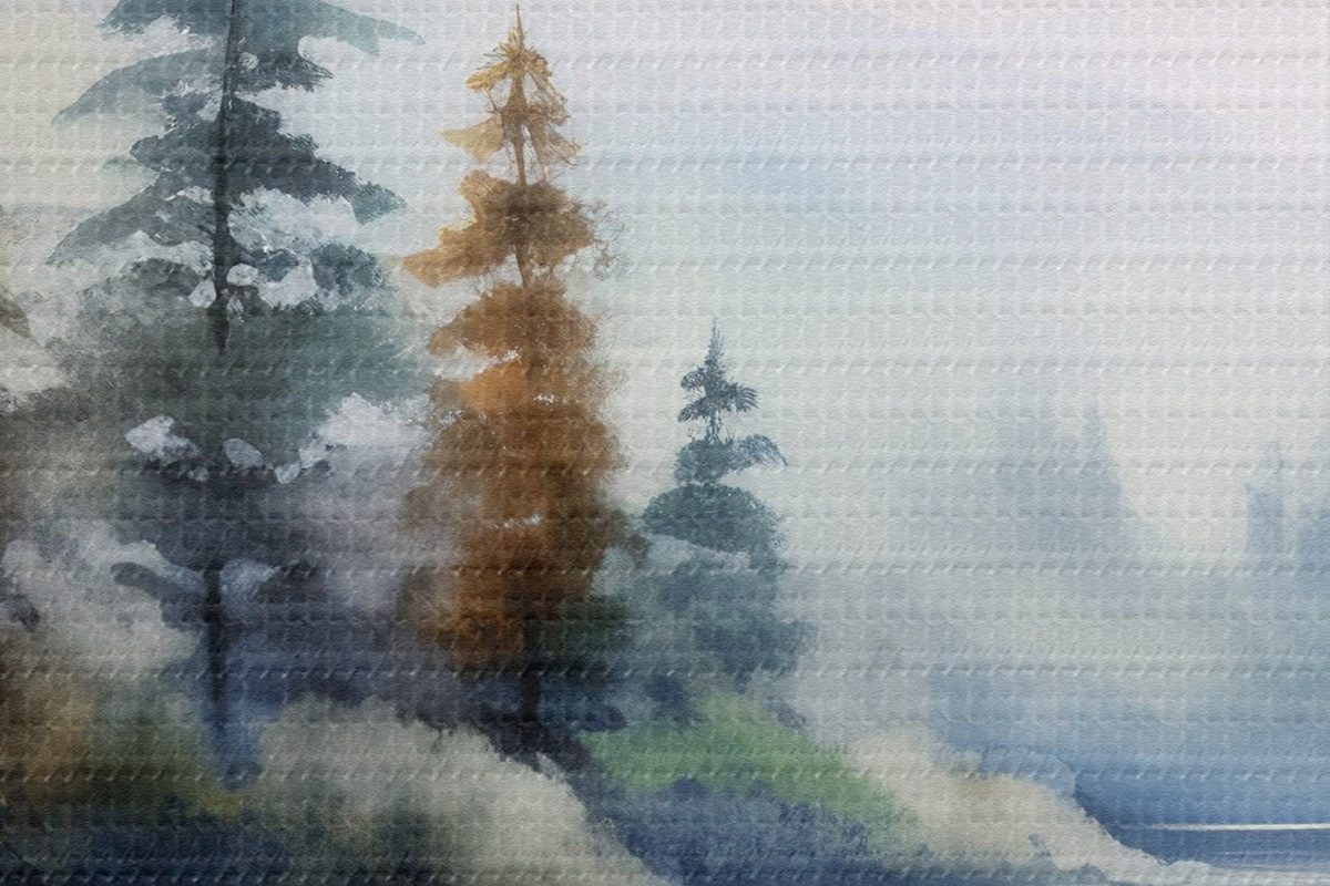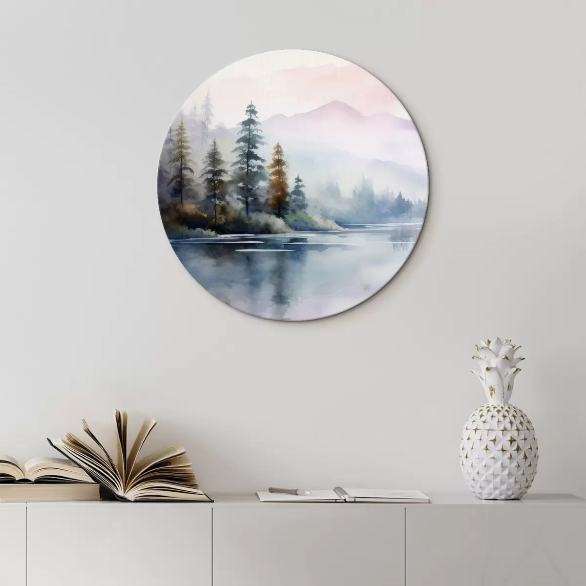 Кругла картина Ліс у тумані на тлі озера Nr r42384
