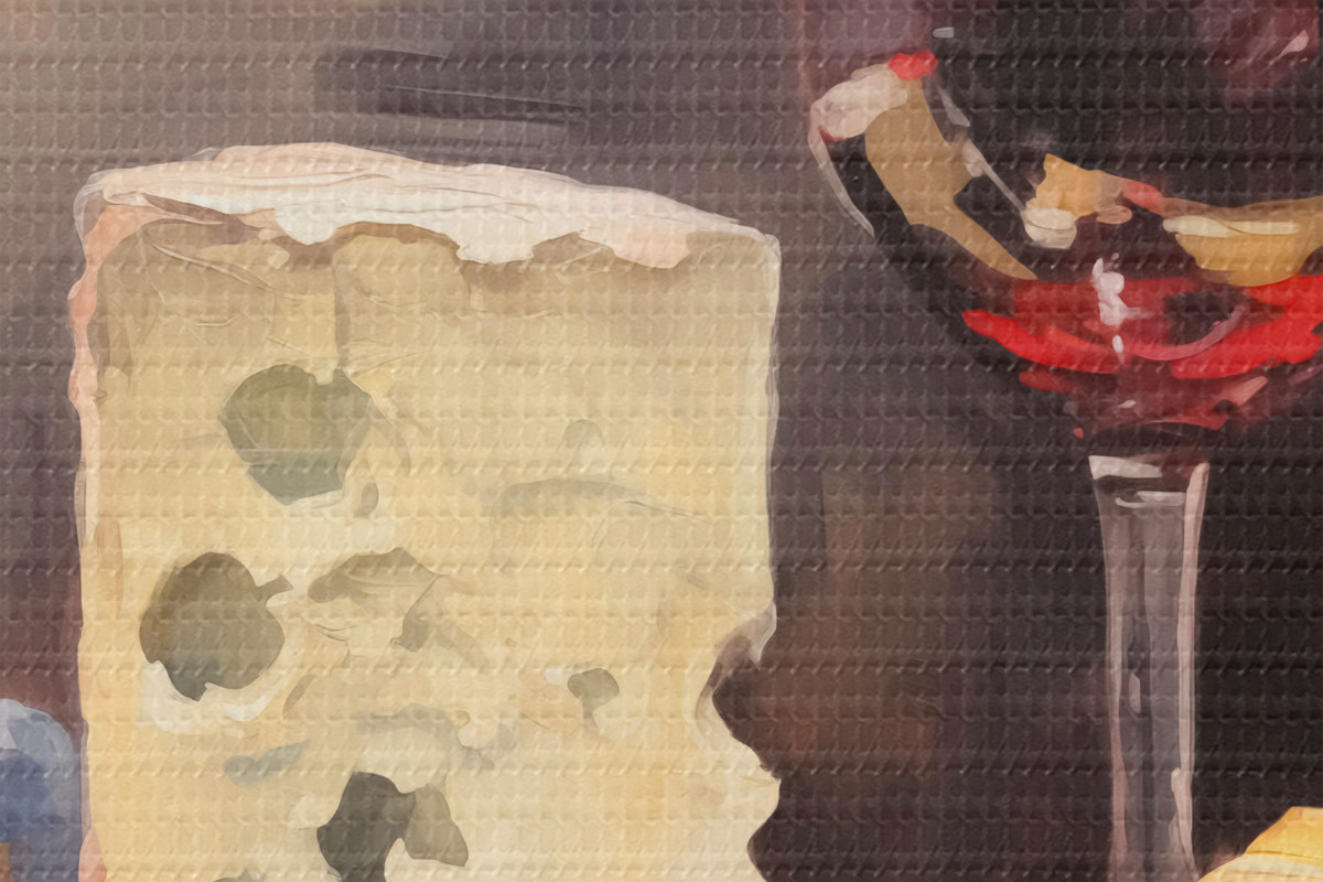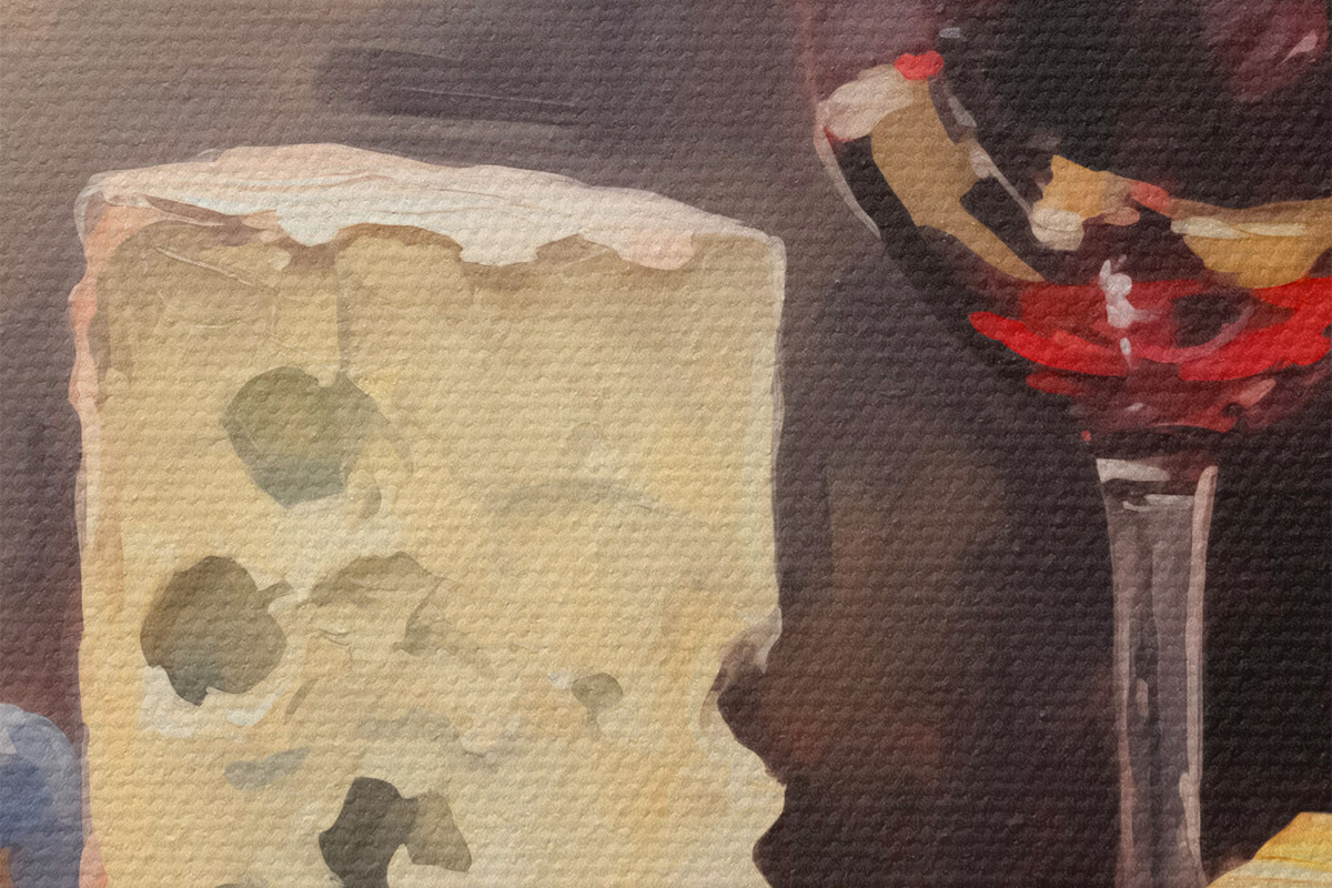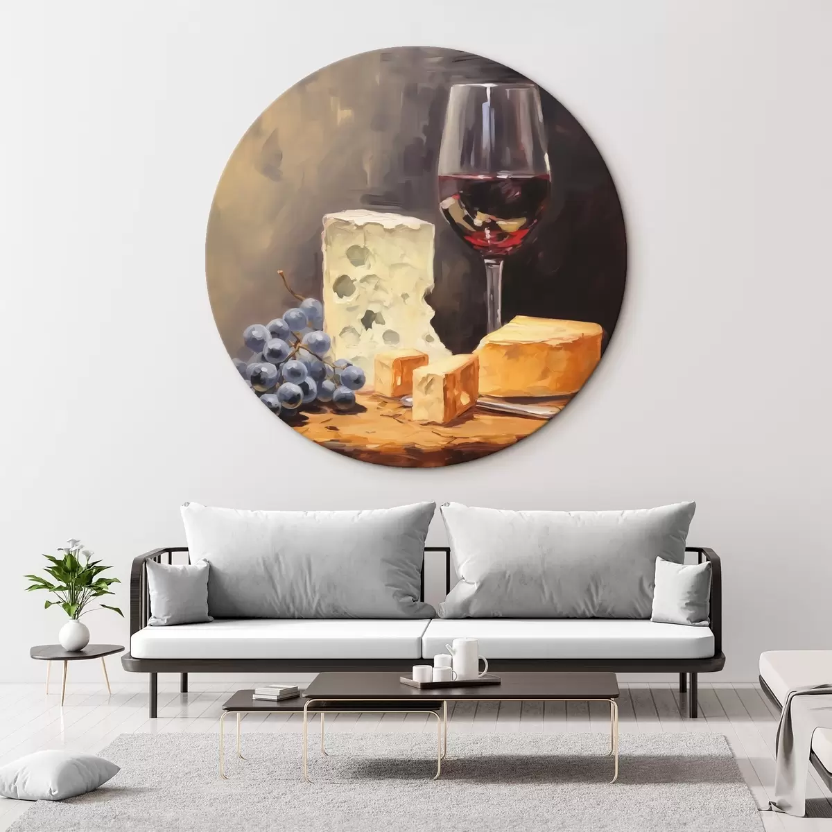 Кругла картина Келих червоного вина та імітація сиру r42415