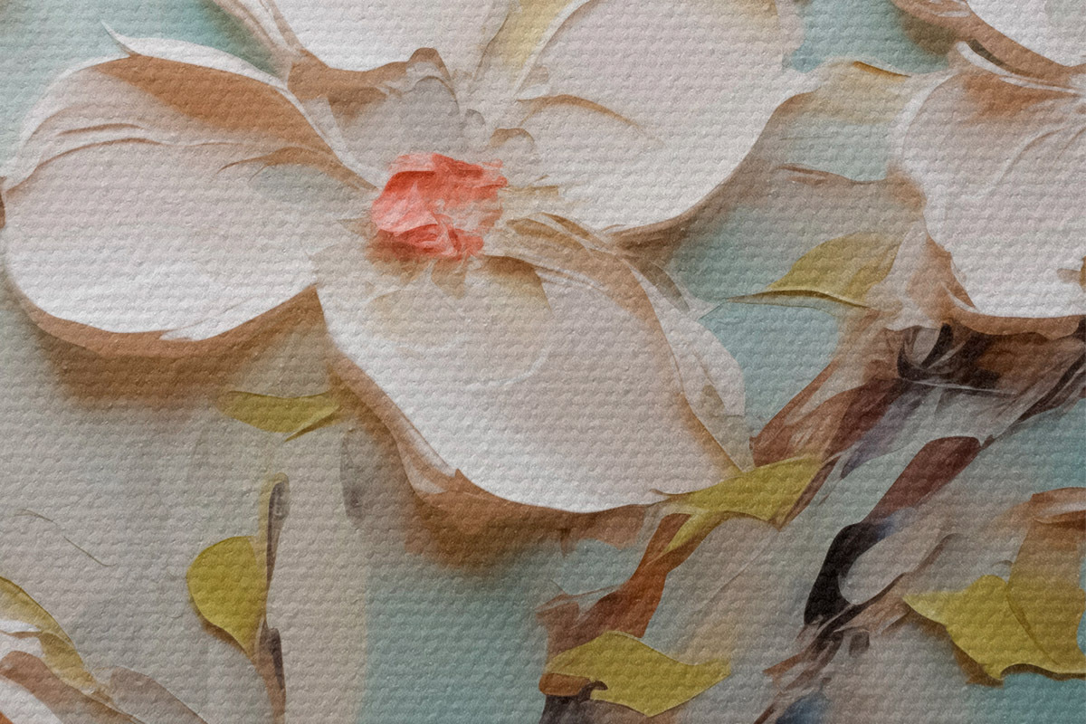Кругла картина Білі квіти з імітацією мазків фарби r42417