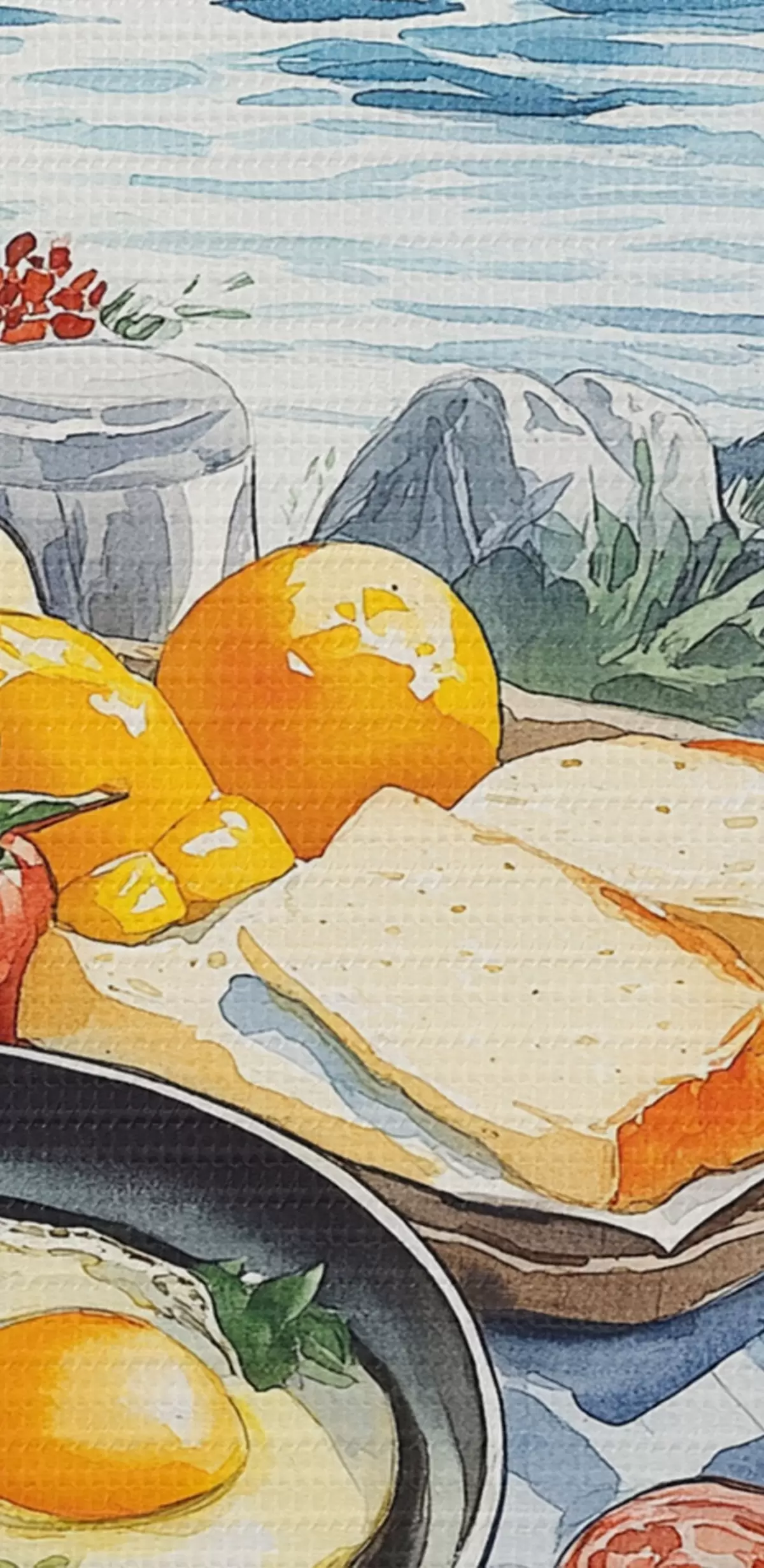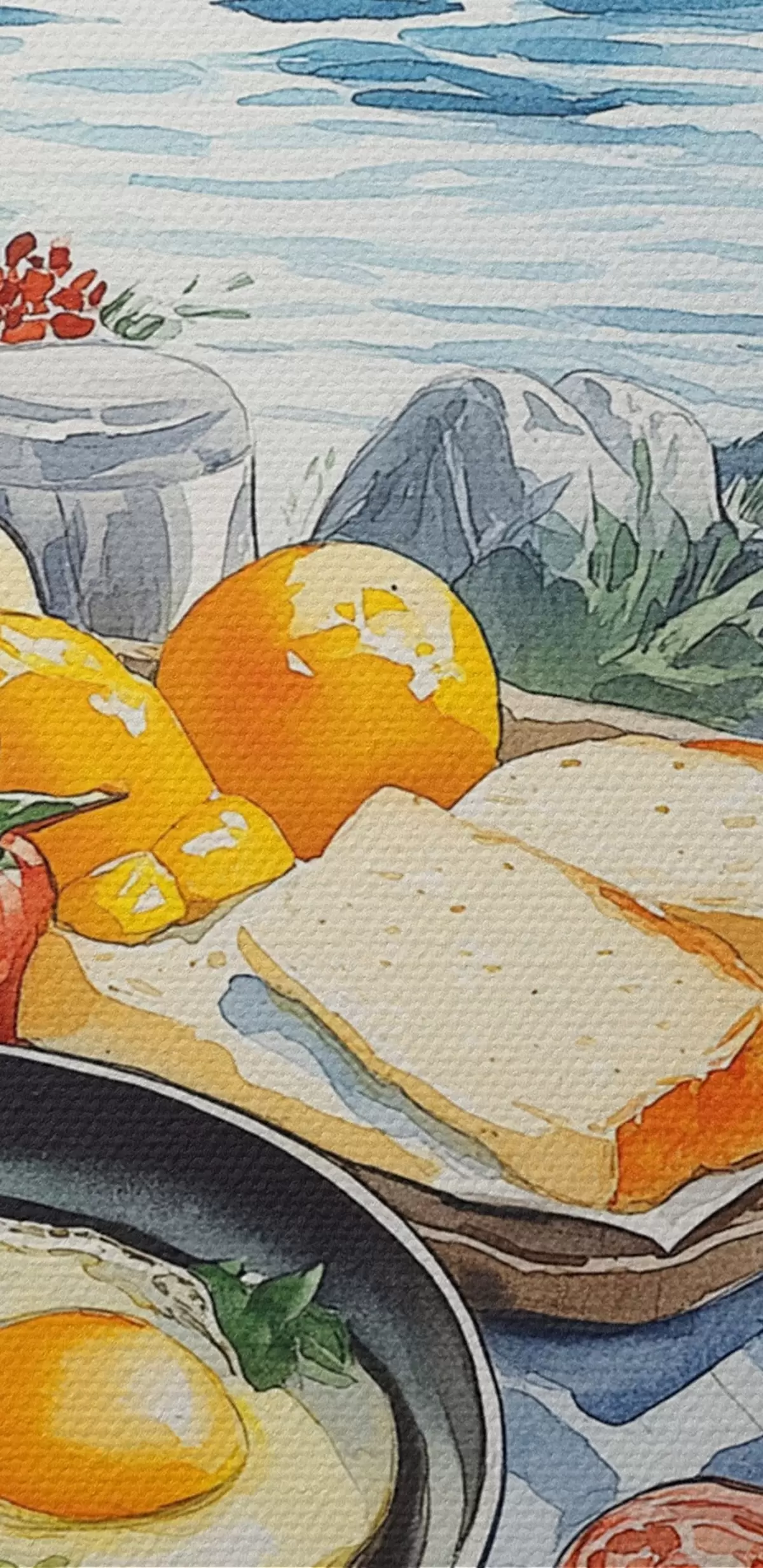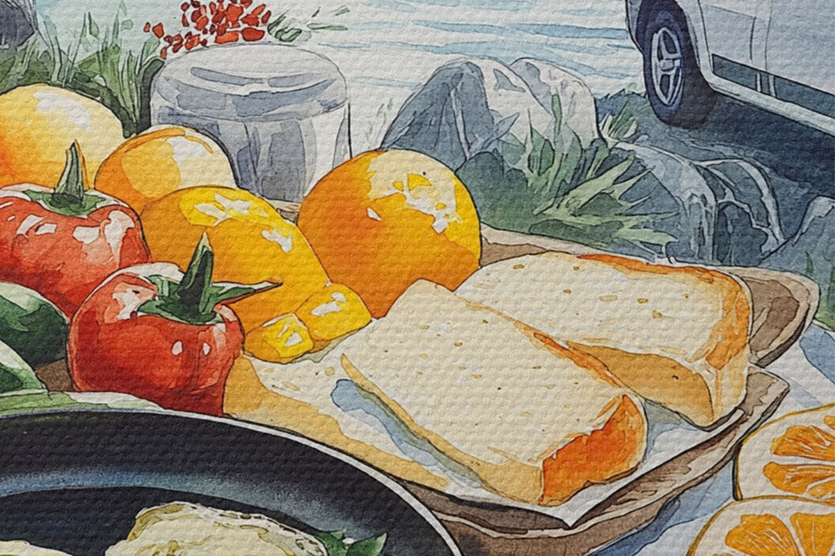 Кругла картина Подорожі, життя на природі, акварельний стиль, Норвегія, сніданок r42430
