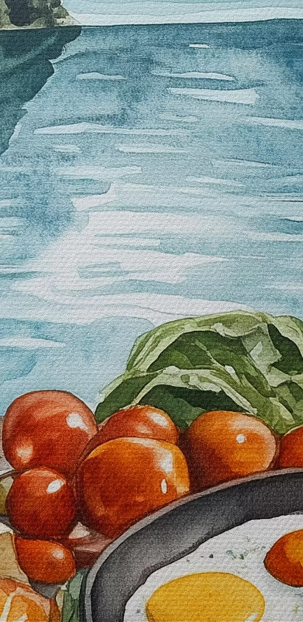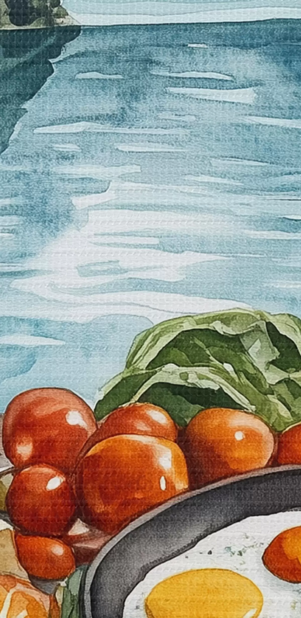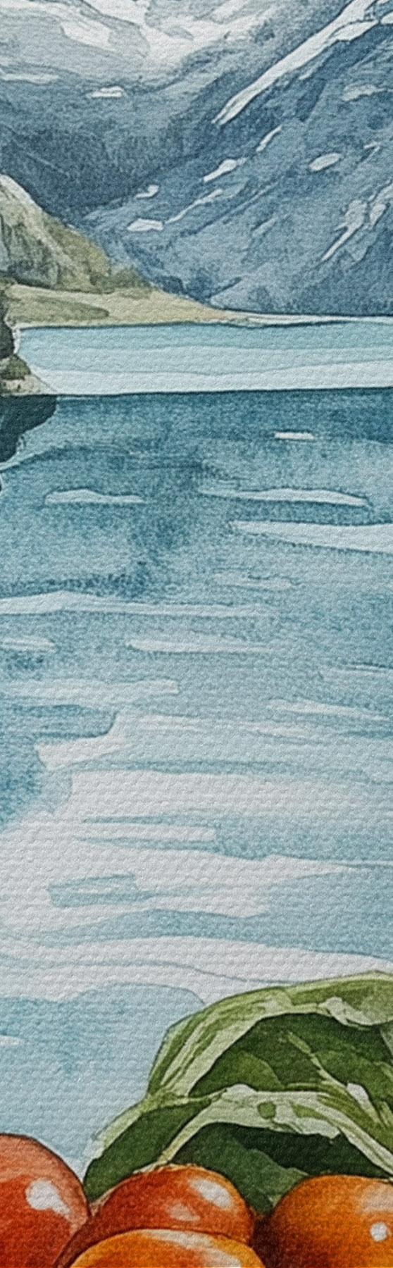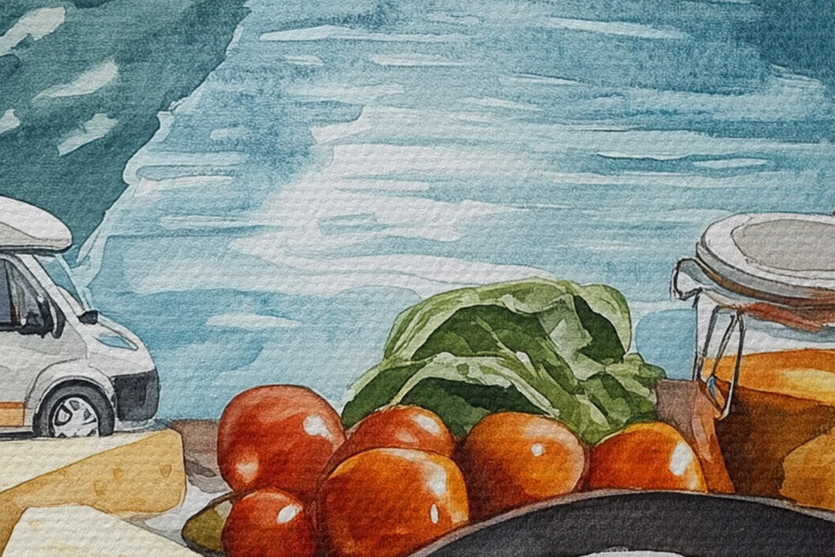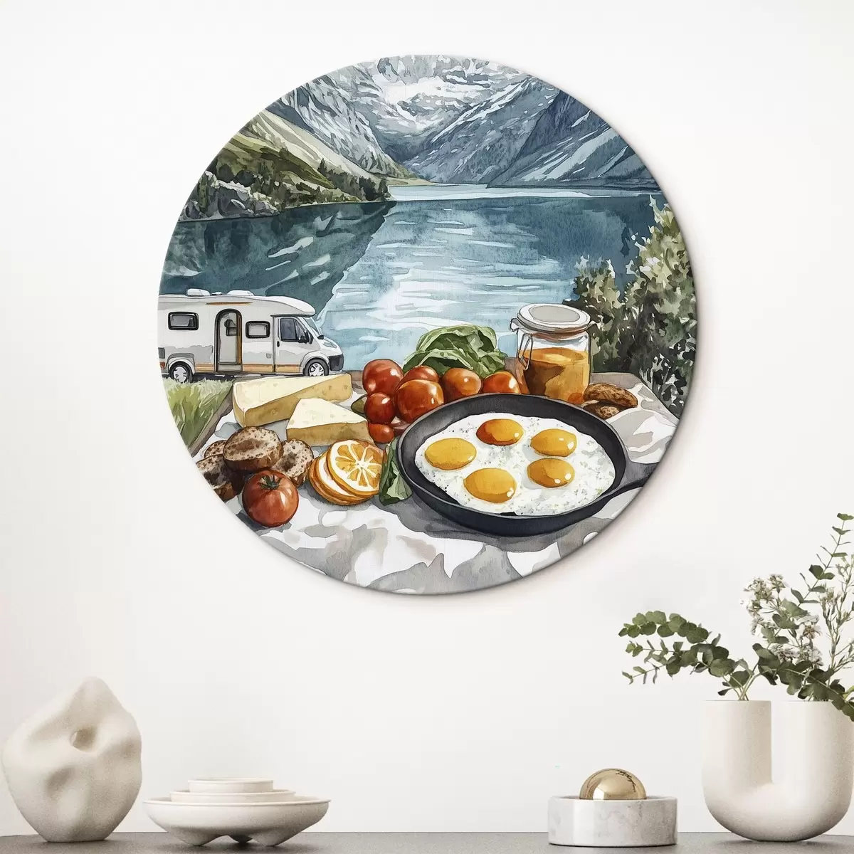 Кругла картина Подорожі, природні пейзажі, акварельний стиль, Норвегія, сніданок, фургон Nr r42431