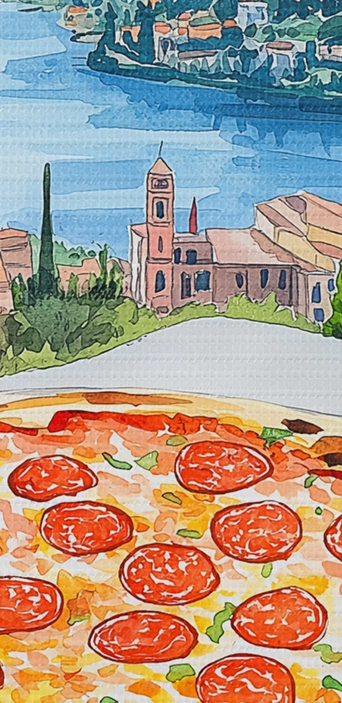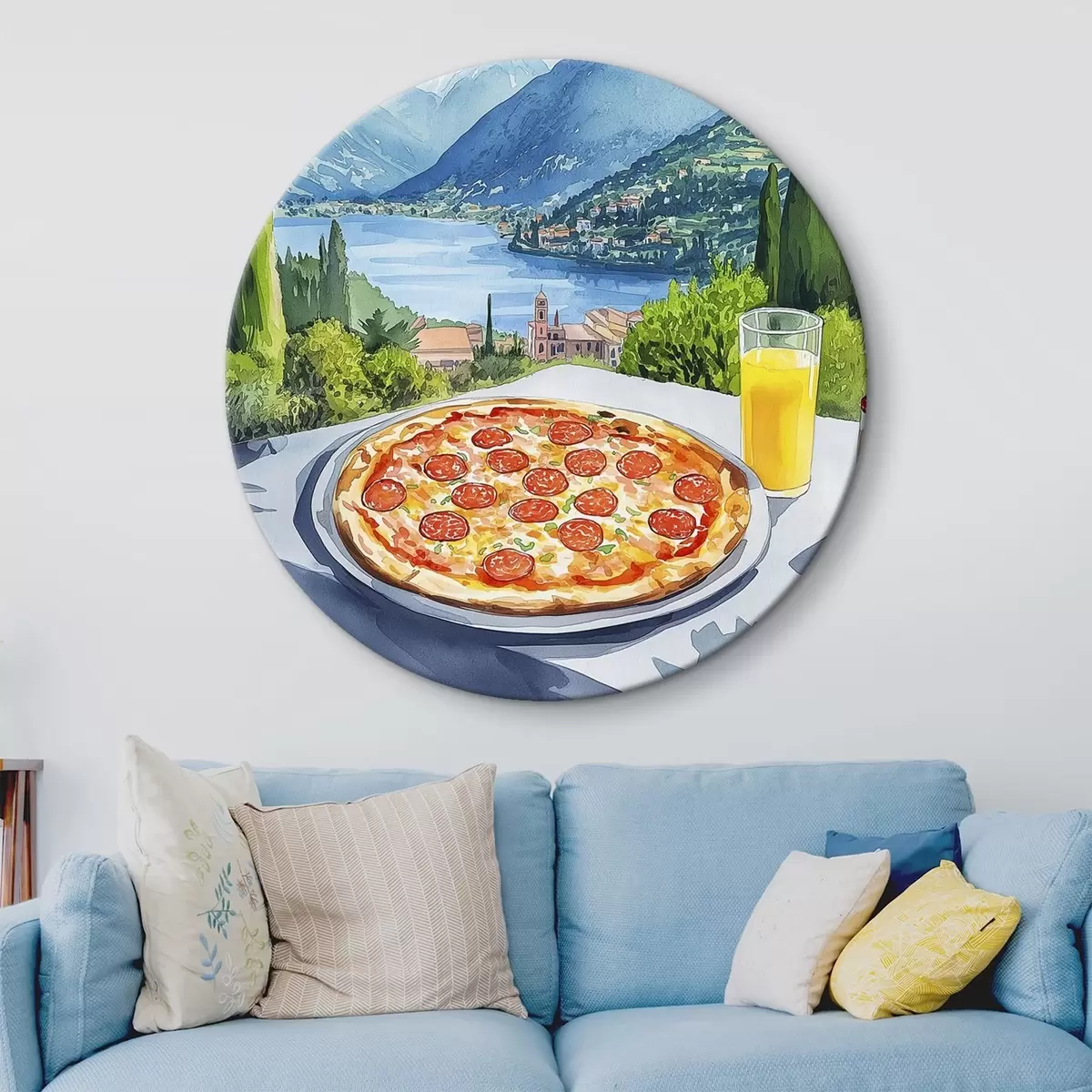 Кругла картина Акварельний стиль, Італія, піца, старе місто, гірський пейзаж Nr r42435