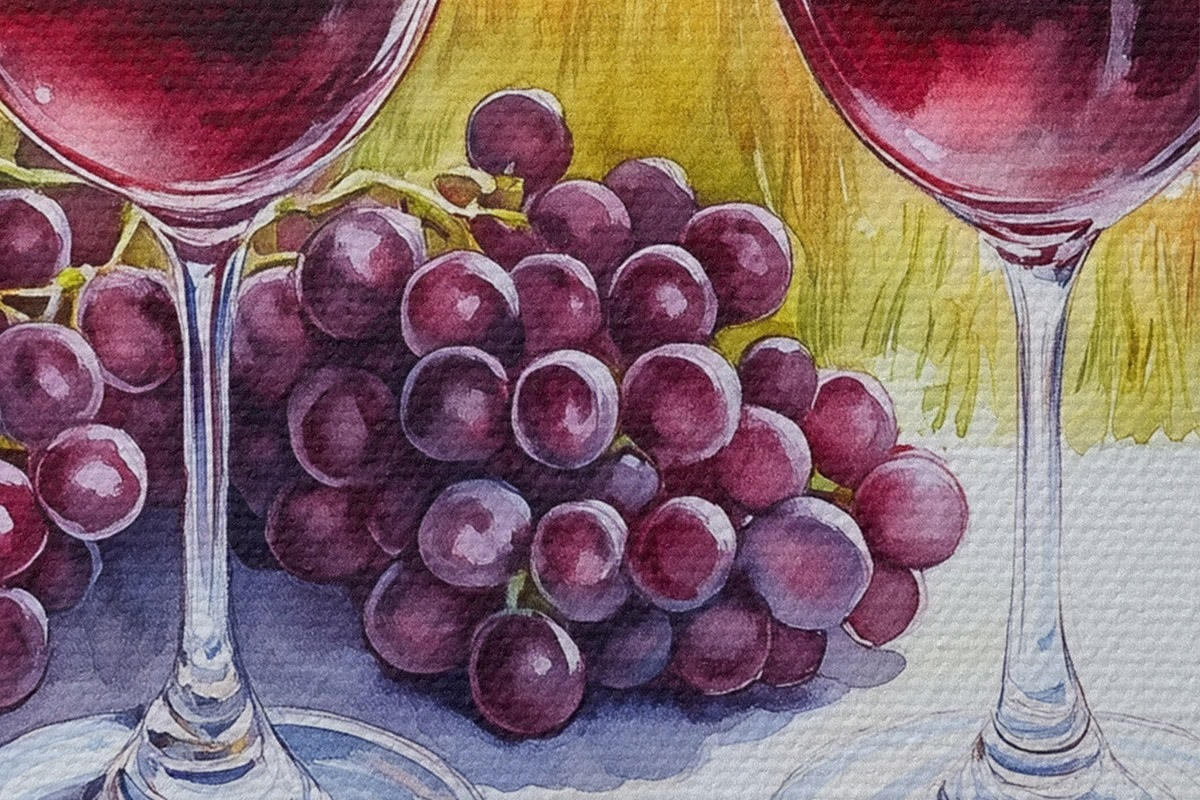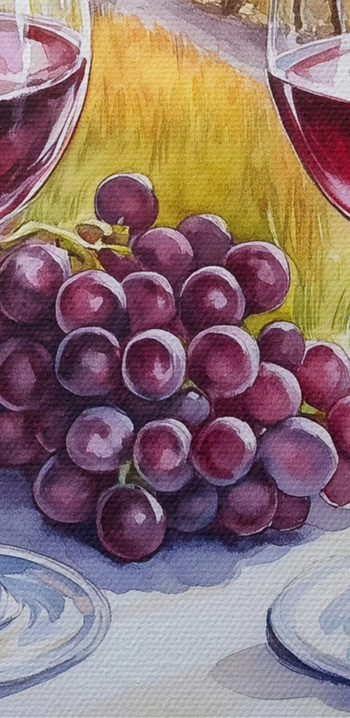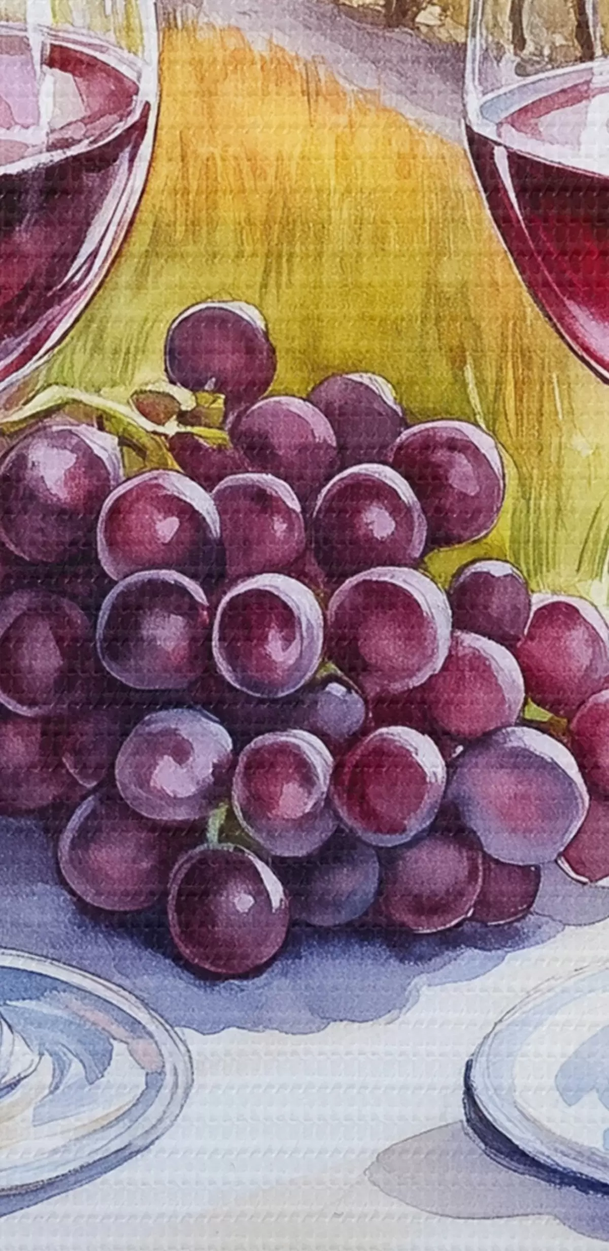Кругла картина Пейзажі Тоскани, акварельний стиль, келихи, виноград, захід сонця Nr r42439