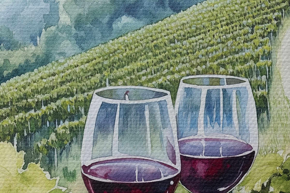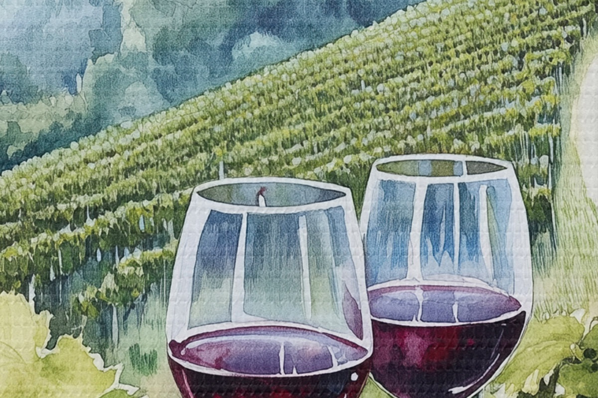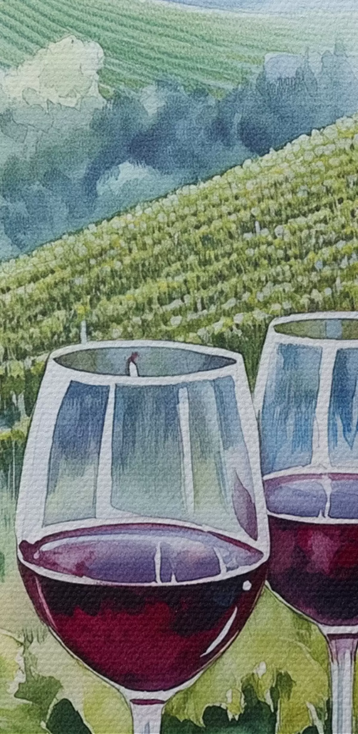 Кругла картина Пейзаж Тоскани, виноградники, келихи, акварельний стиль Nr r42445