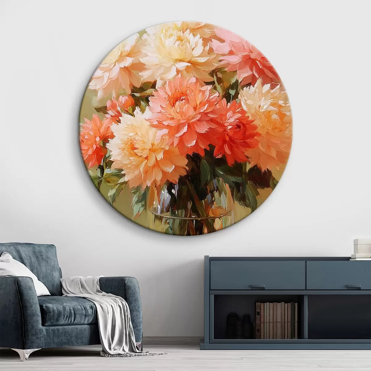 Кругла картина Букет пишних квітів у вазі Nr r42494