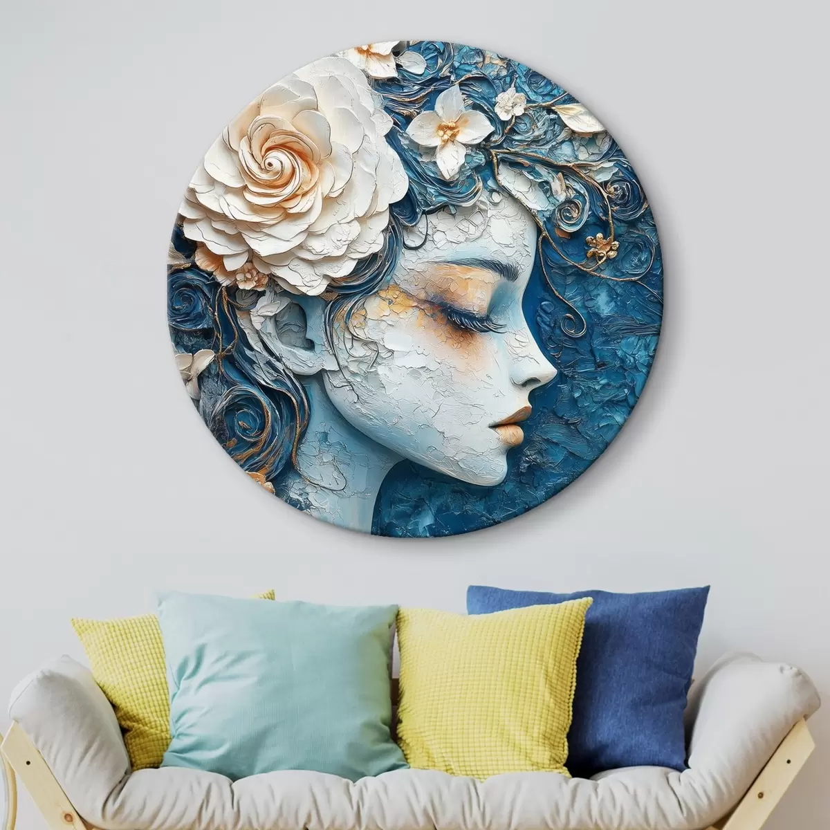 Кругла картина Малюнок дівчини в профіль у синіх тонах Nr r42495