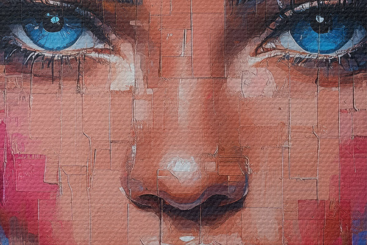 Кругла картина Портрет дівчини з мозаїчних шматочків r42504
