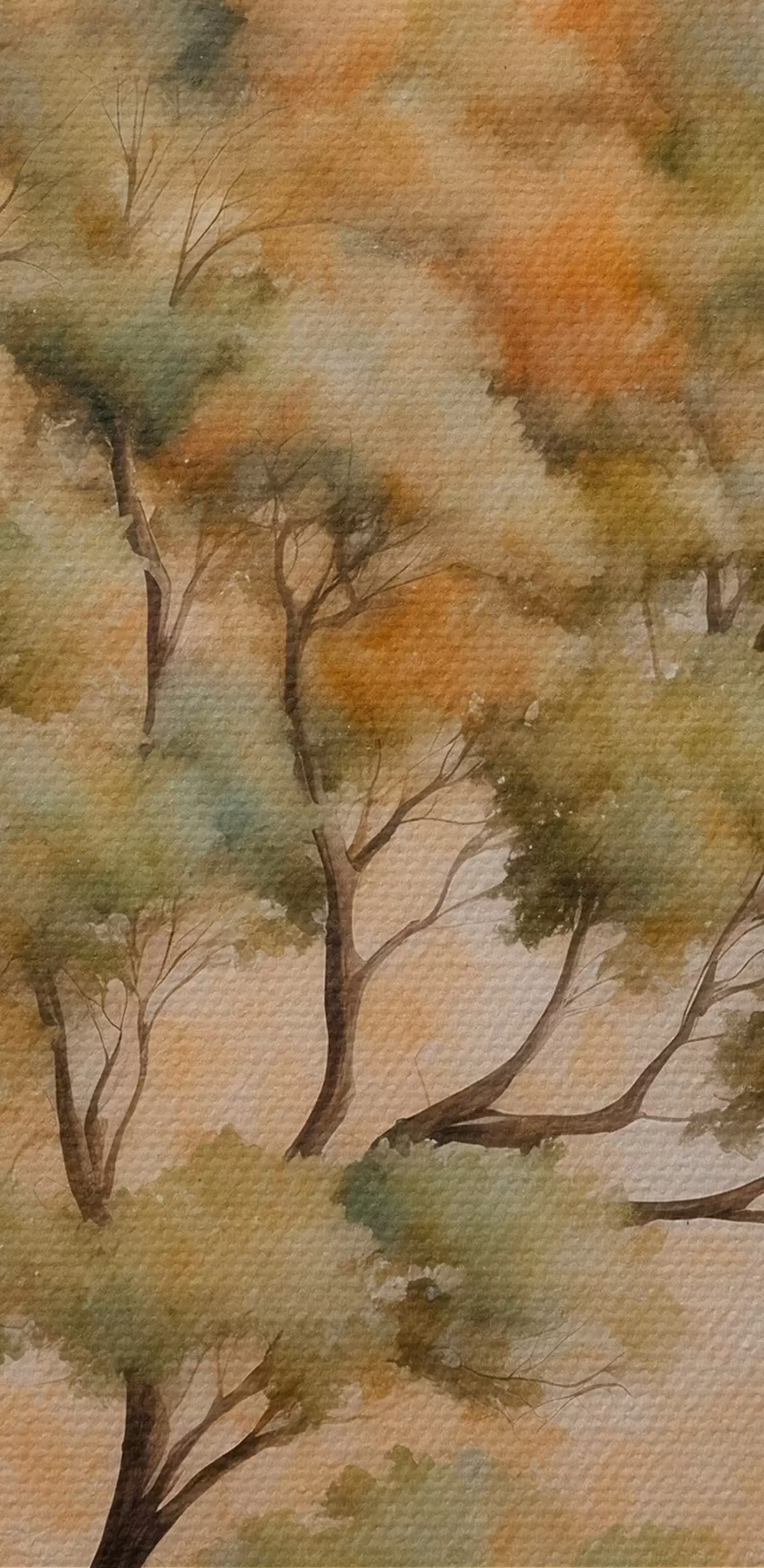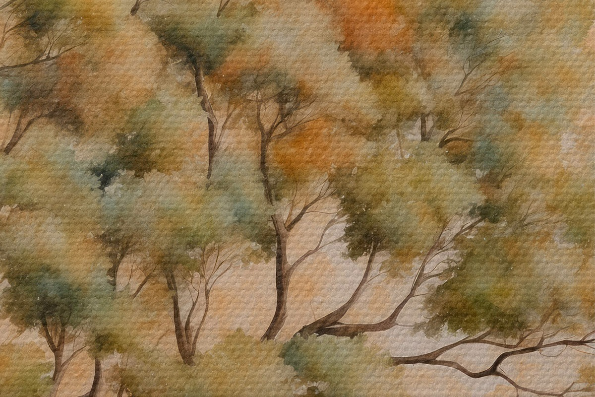 Кругла картина Дерево на помаранчево-білому тлі в стилі акварельного живопису Nr r42514