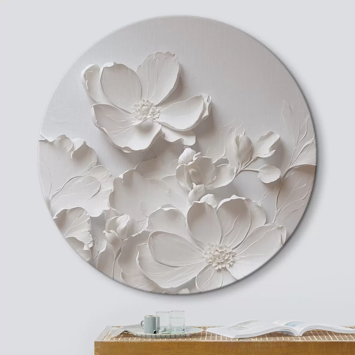 Кругла картина Білі квіти на білому тлі в стилі олійного живопису Nr r42516