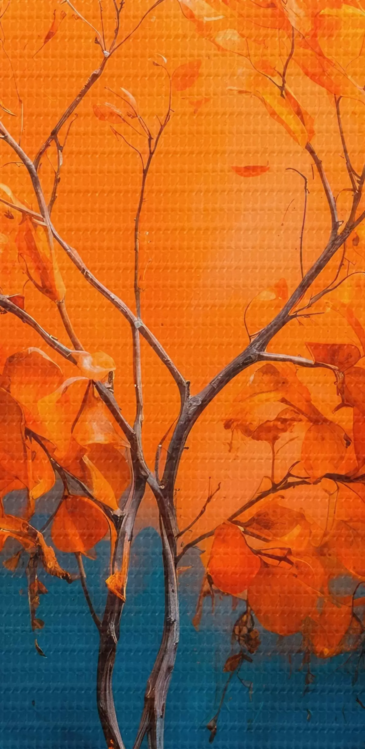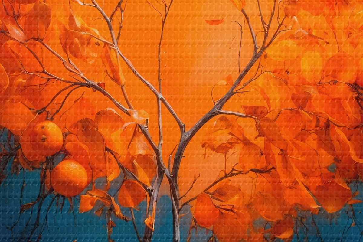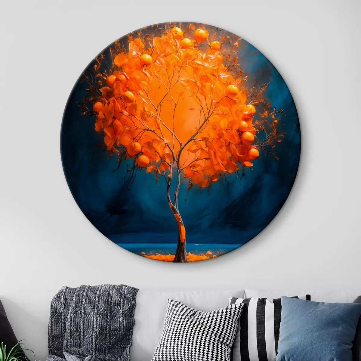 Кругла картина Апельсинове дерево на блакитному тлі в стилі акрилового живопису Nr r42525