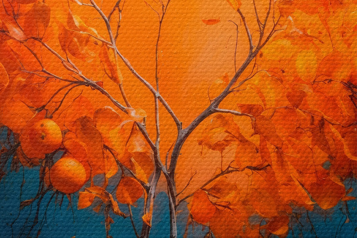 Кругла картина Апельсинове дерево на блакитному тлі в стилі акрилового живопису r42525