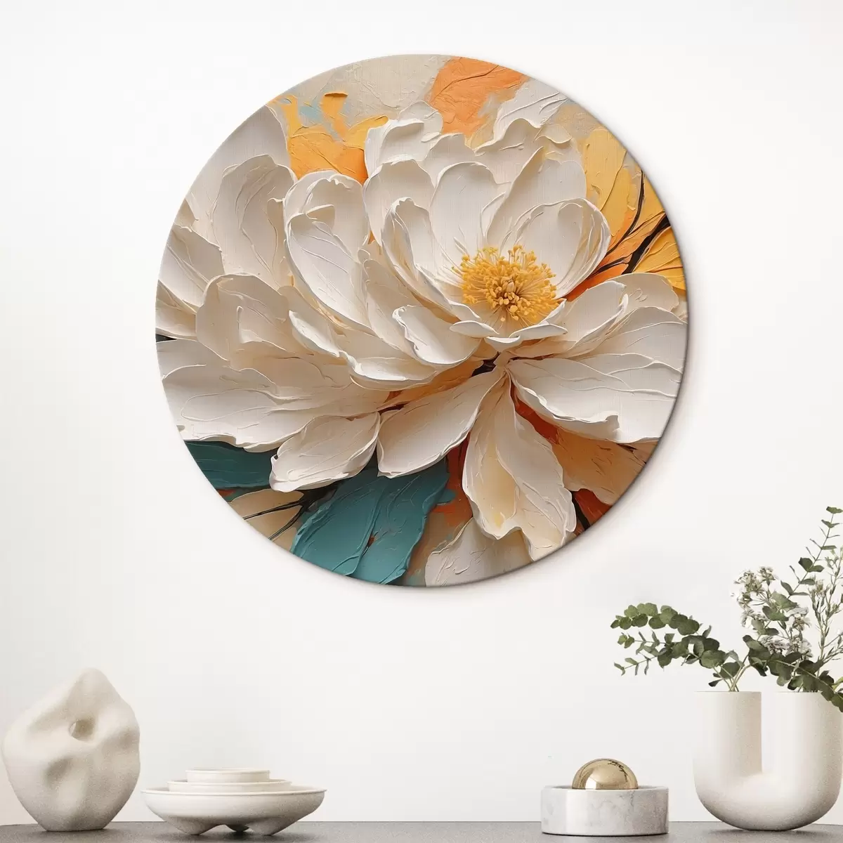 Кругла картина Біла квітка в стилі олійного живопису Nr r42528
