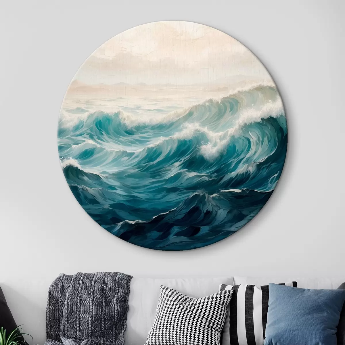Кругла картина Бурхливі хвилі в тумані Nr r42541