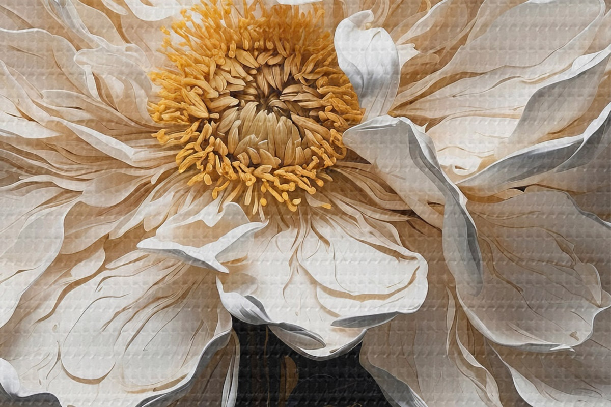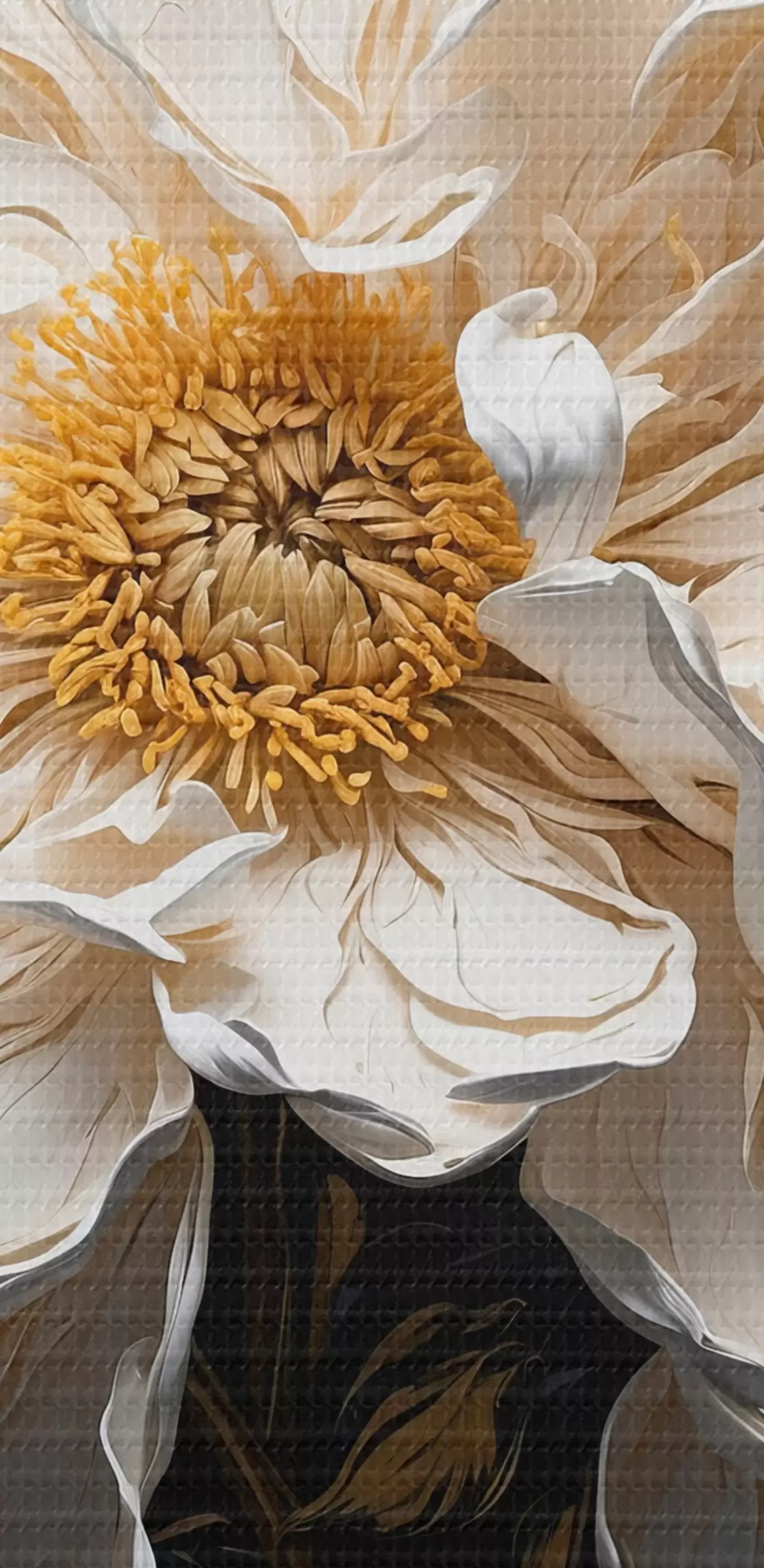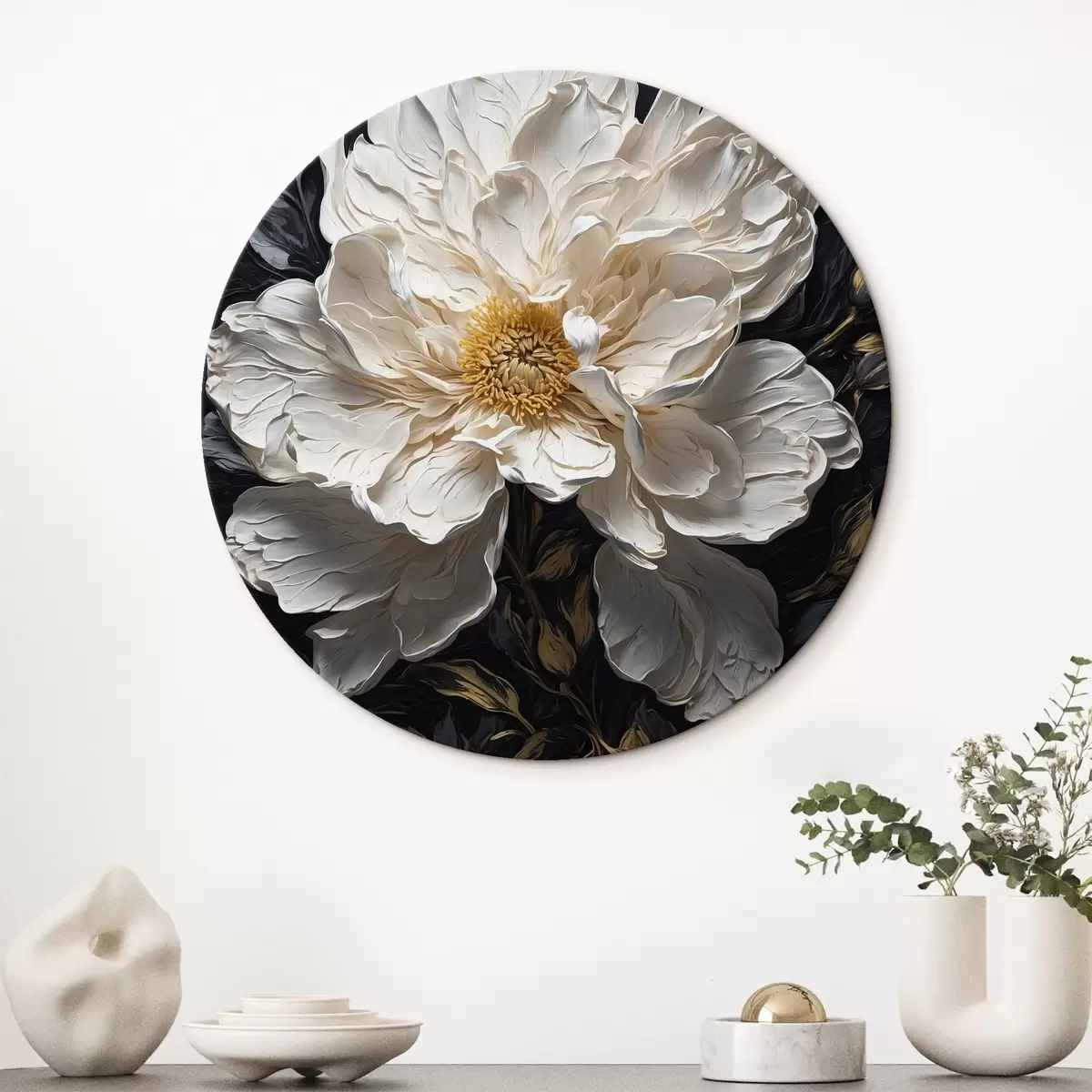 Кругла картина Біла квітка на чорному тлі в стилі олійного живопису Nr r42544