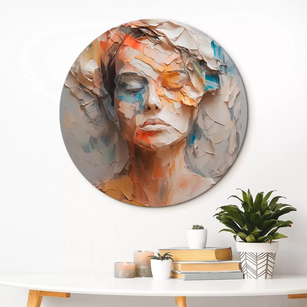 Кругла картина Абстрактний портрет дівчини з імітацією мазків пензля Nr r42587