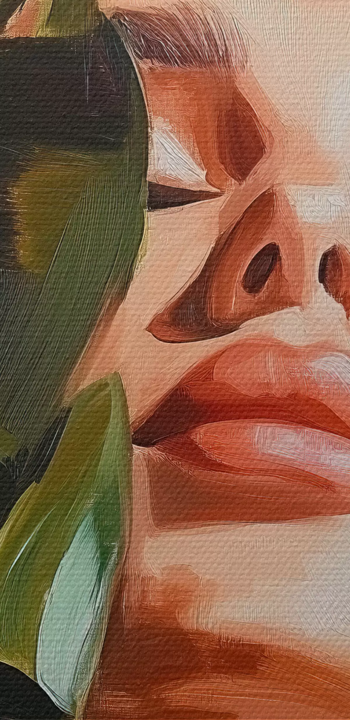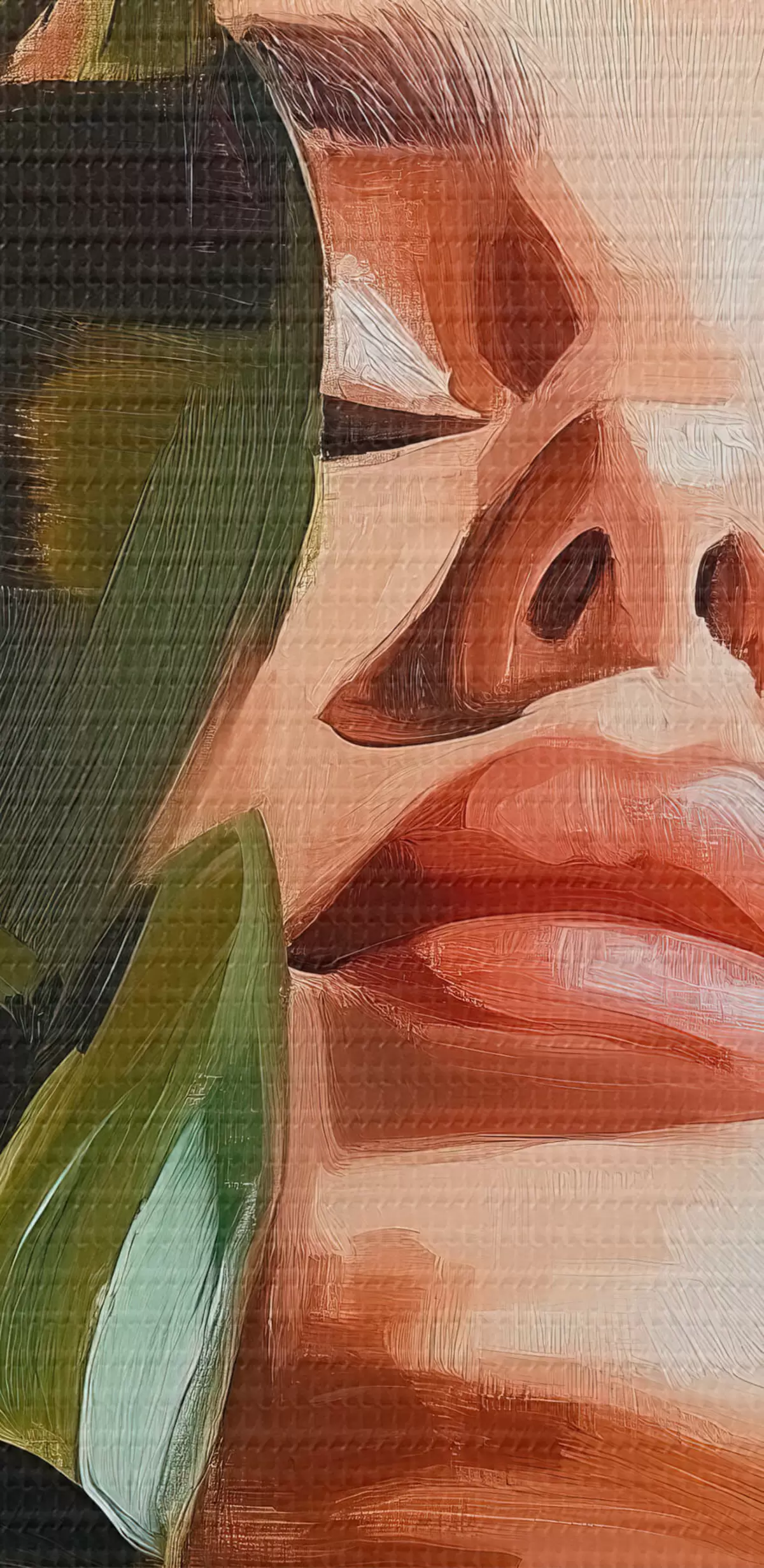 Кругла картина Портрет жінки з листком монстери з імітацією мазків пензля Nr r42597