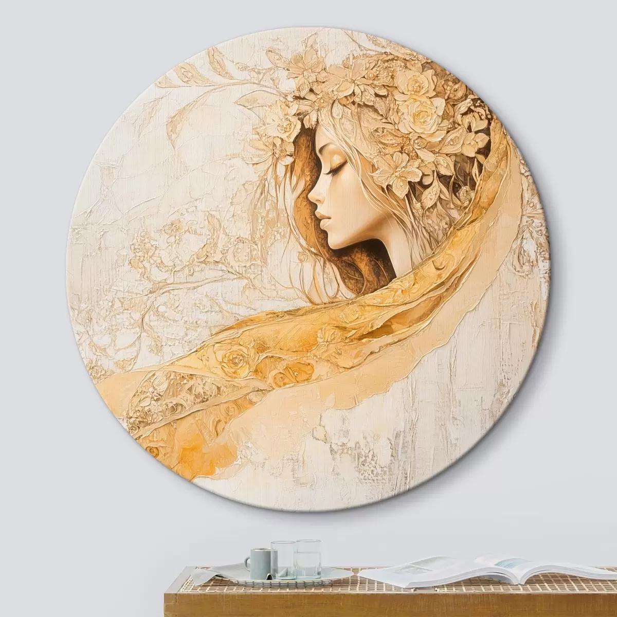 Кругла картина Ніжна дівчина в стилі олійного живопису з квітами Nr r42616