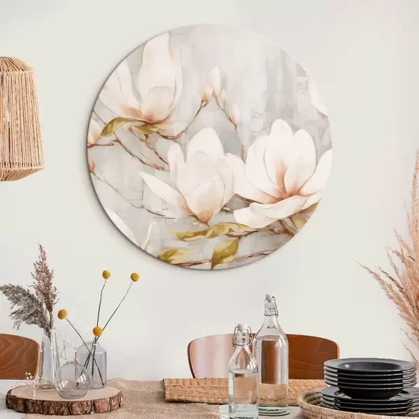 Кругла картина Гілка з квітами магнолії - тренд r42632