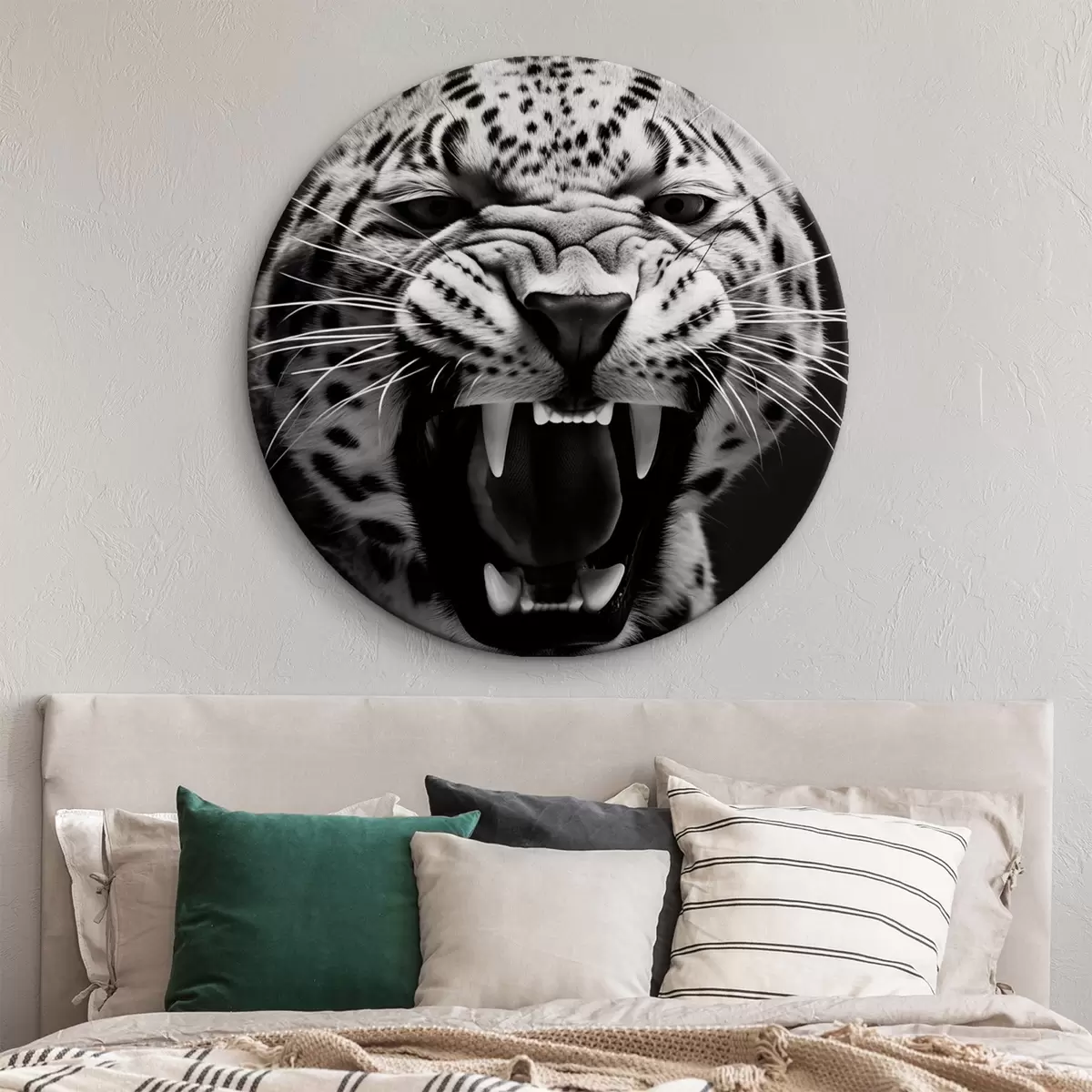 Кругла картина Леопард у чорно-білому стилі Nr r42646