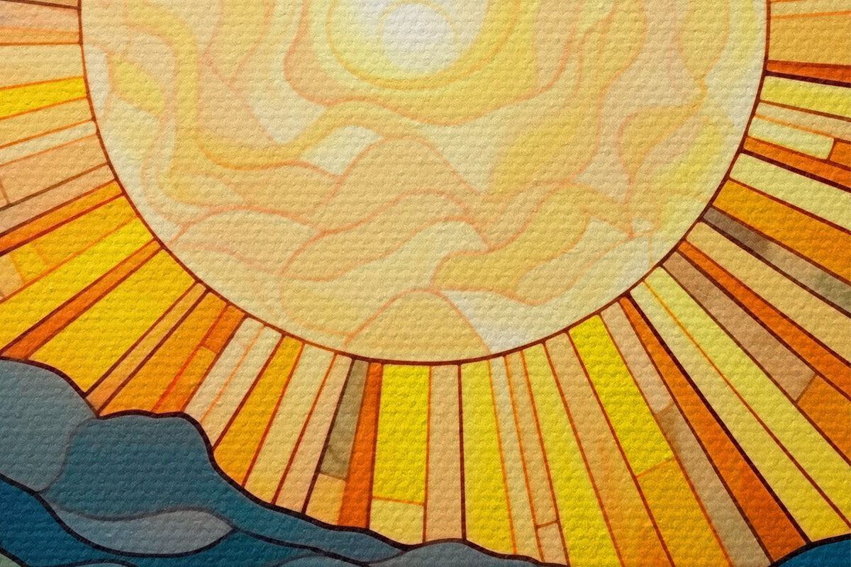 Кругла картина Сонце і хвилі в стилі вітражного мистецтва r42654