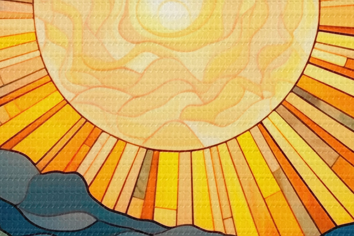 Кругла картина Сонце і хвилі в стилі вітражного мистецтва Nr r42654