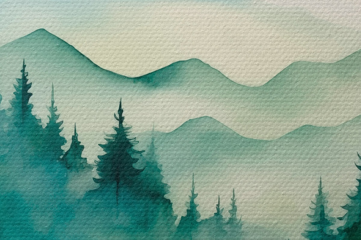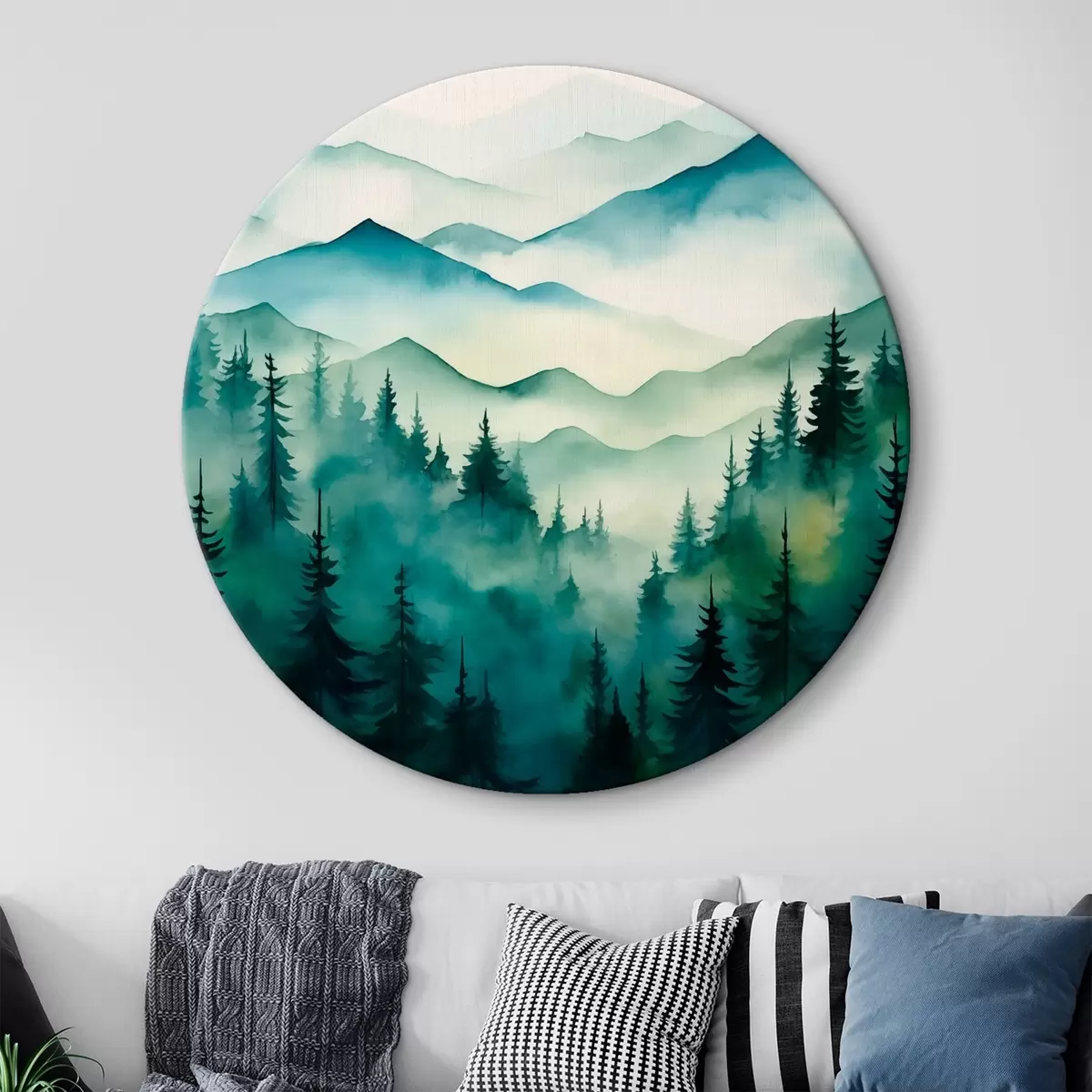 Кругла картина Туманний пейзаж з горами та лісом Nr r42662