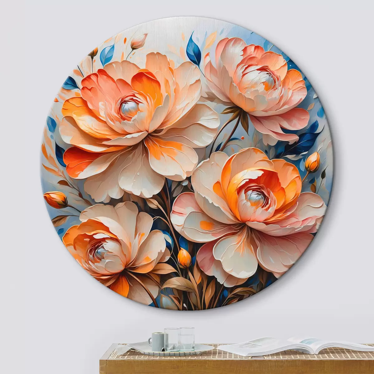Кругла картина Квіти на синьому тлі Nr r42709