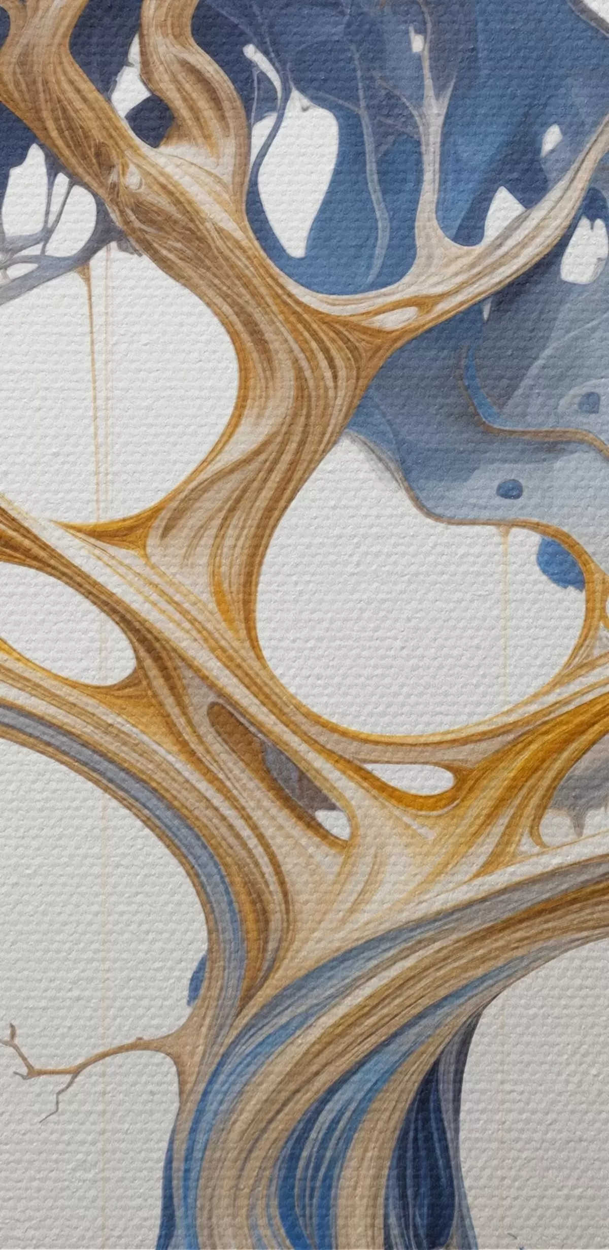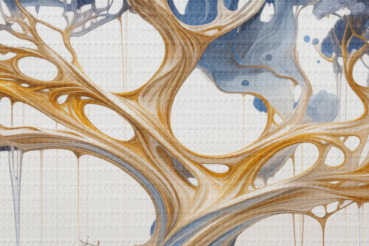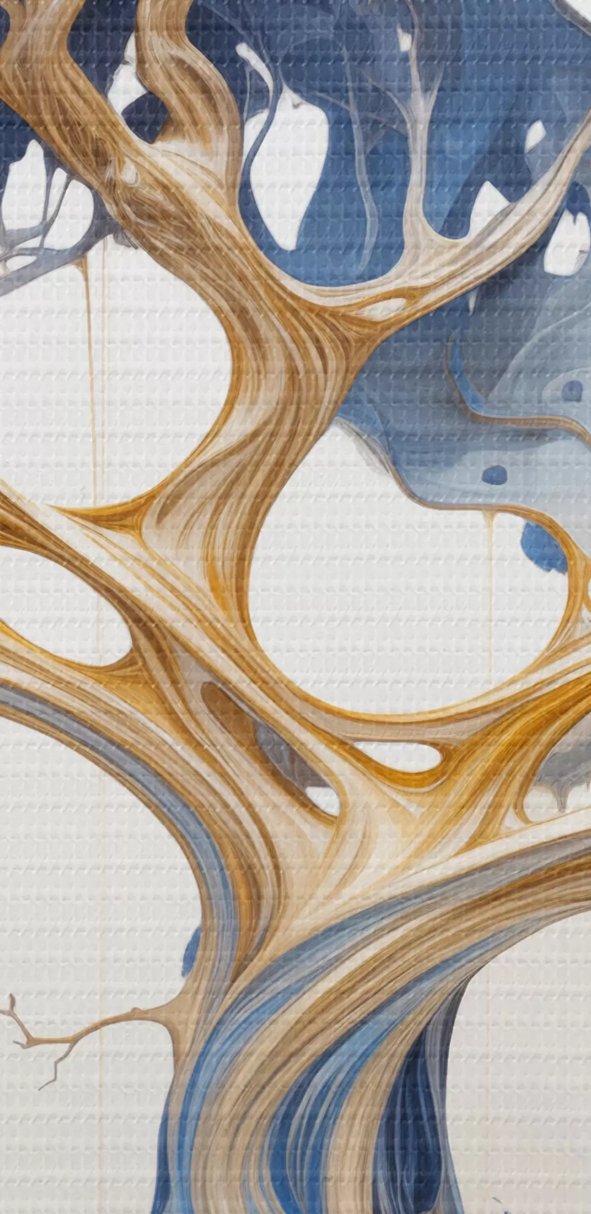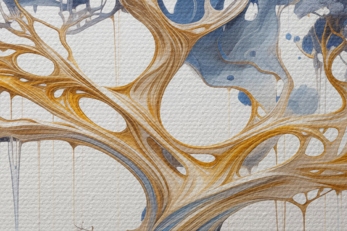 Кругла картина Стилізоване дерево зі складними гілками та листям, що відрізняється поєднанням синіх і жовтих відтінків Nr r42722