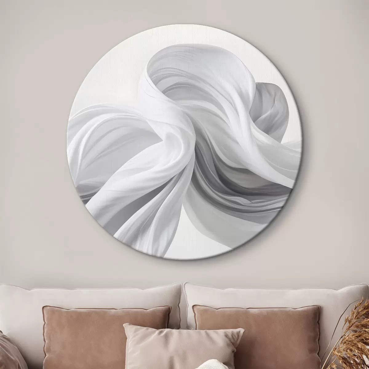 Кругла картина Плавні білі та сірі тканиноподібні форми, що закручуються та переплітаються на світлому тлі Nr r42732