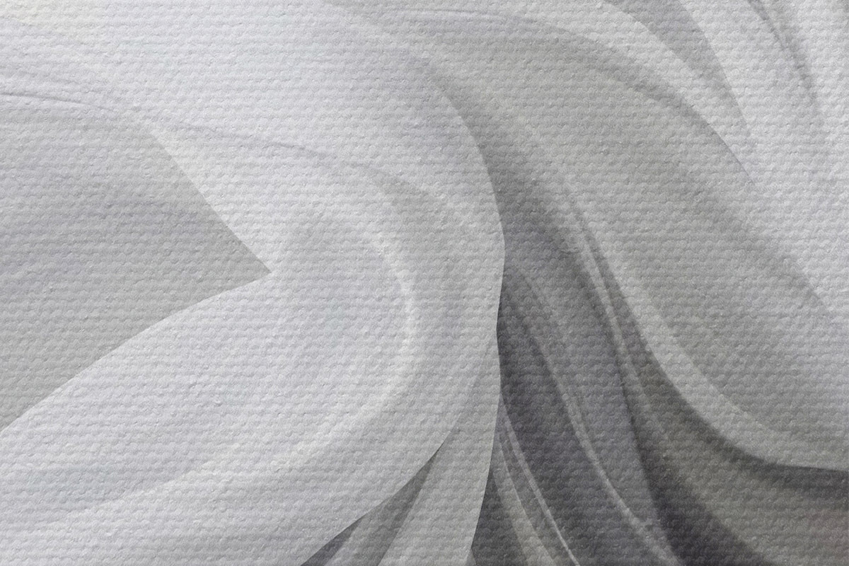 Кругла картина Плавні білі та сірі тканиноподібні форми, що закручуються та переплітаються на світлому тлі r42732