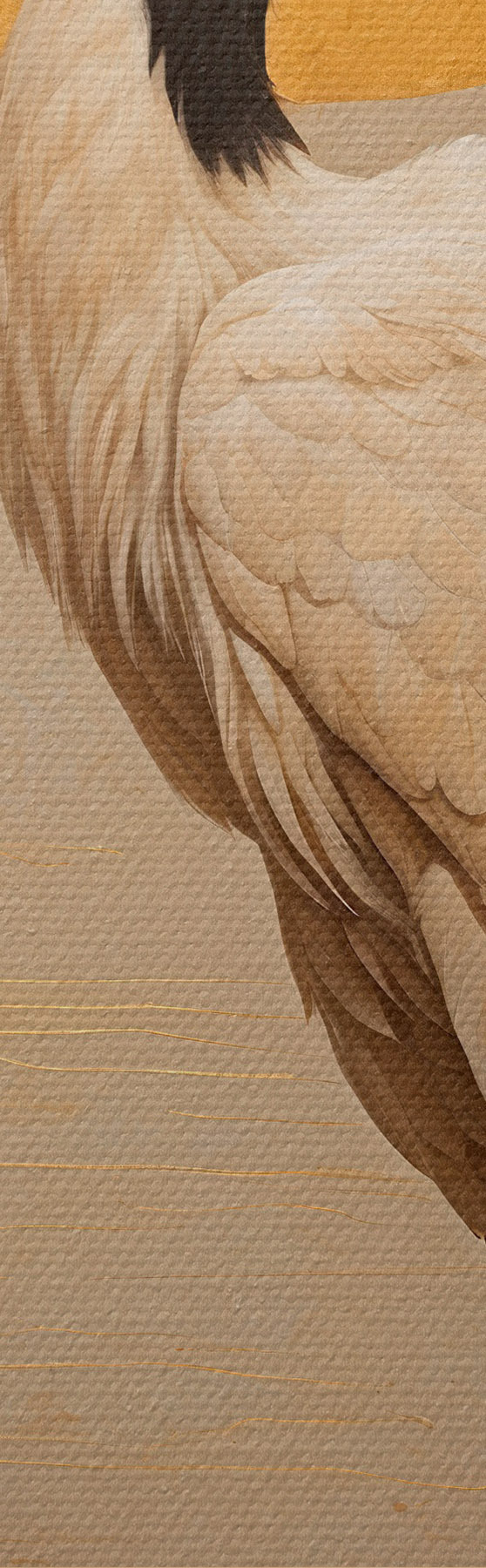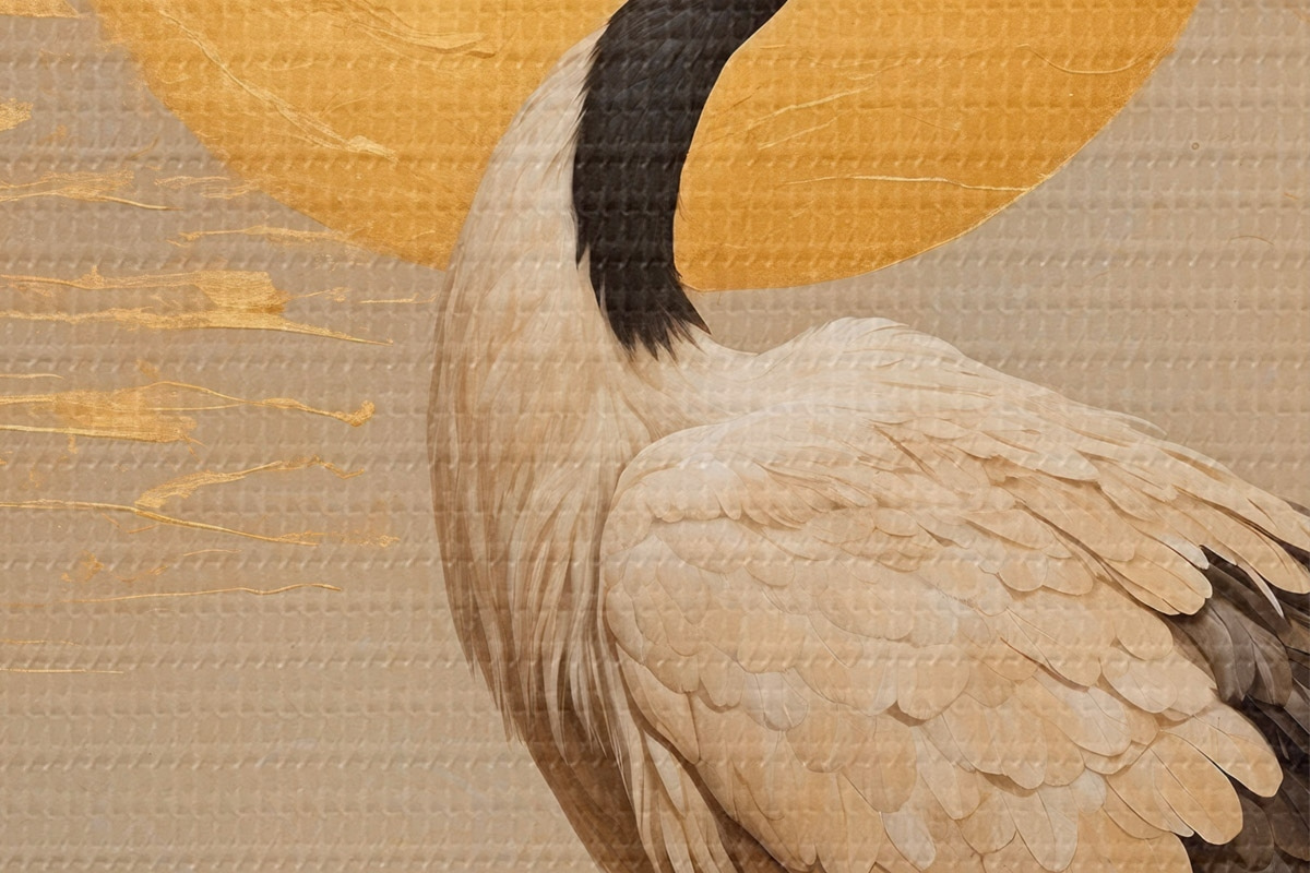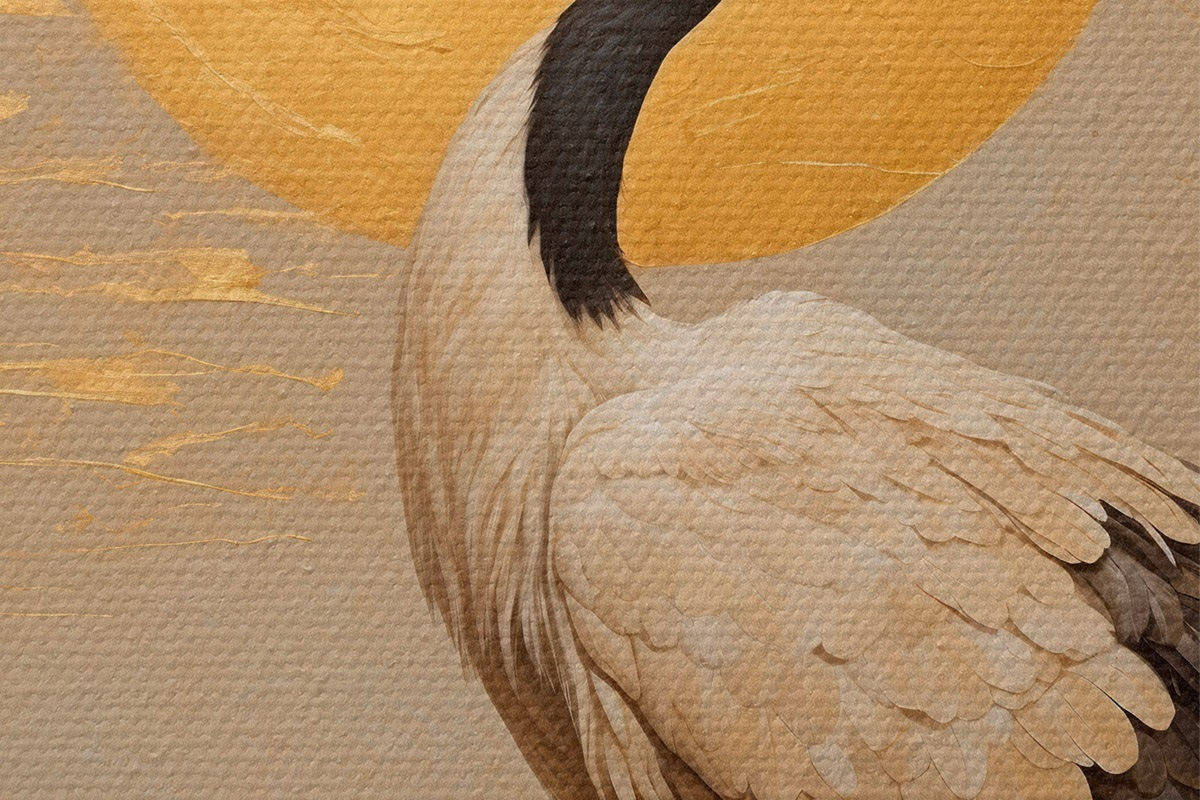 Кругла картина Журавель на фоні сонця в стилі акрилового живопису Nr r42773