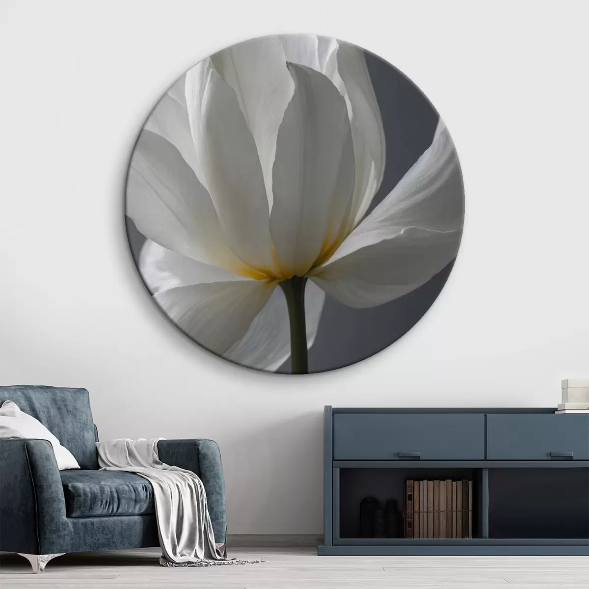Кругла картина Біла квітка на сірому фоні r42779