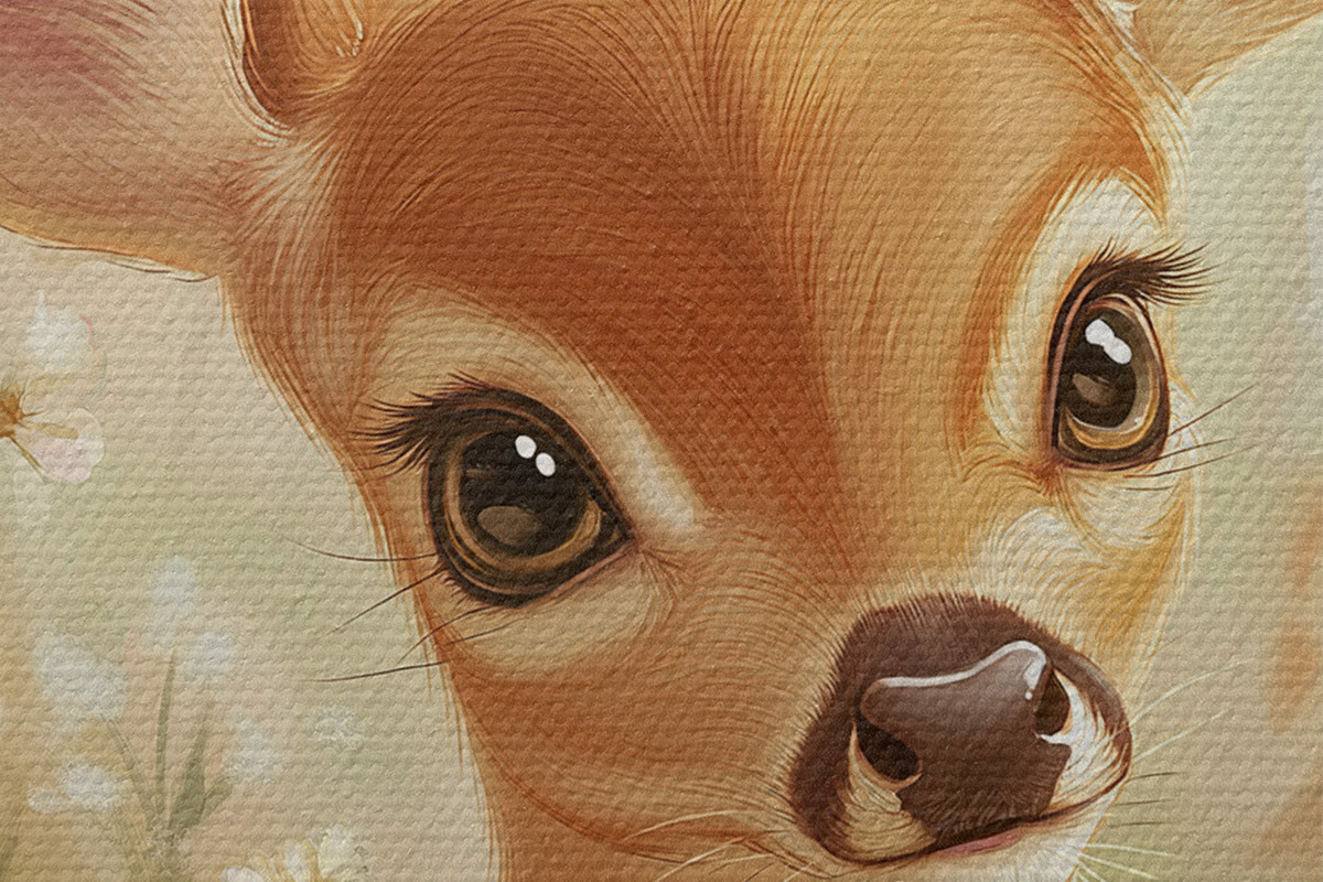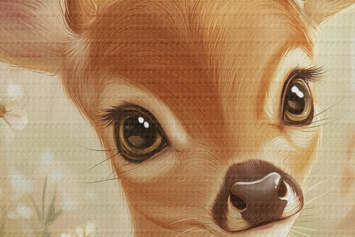 Кругла картина Симпатичний олень на лузі з квітами маргариток, малюнок олією Nr r42780