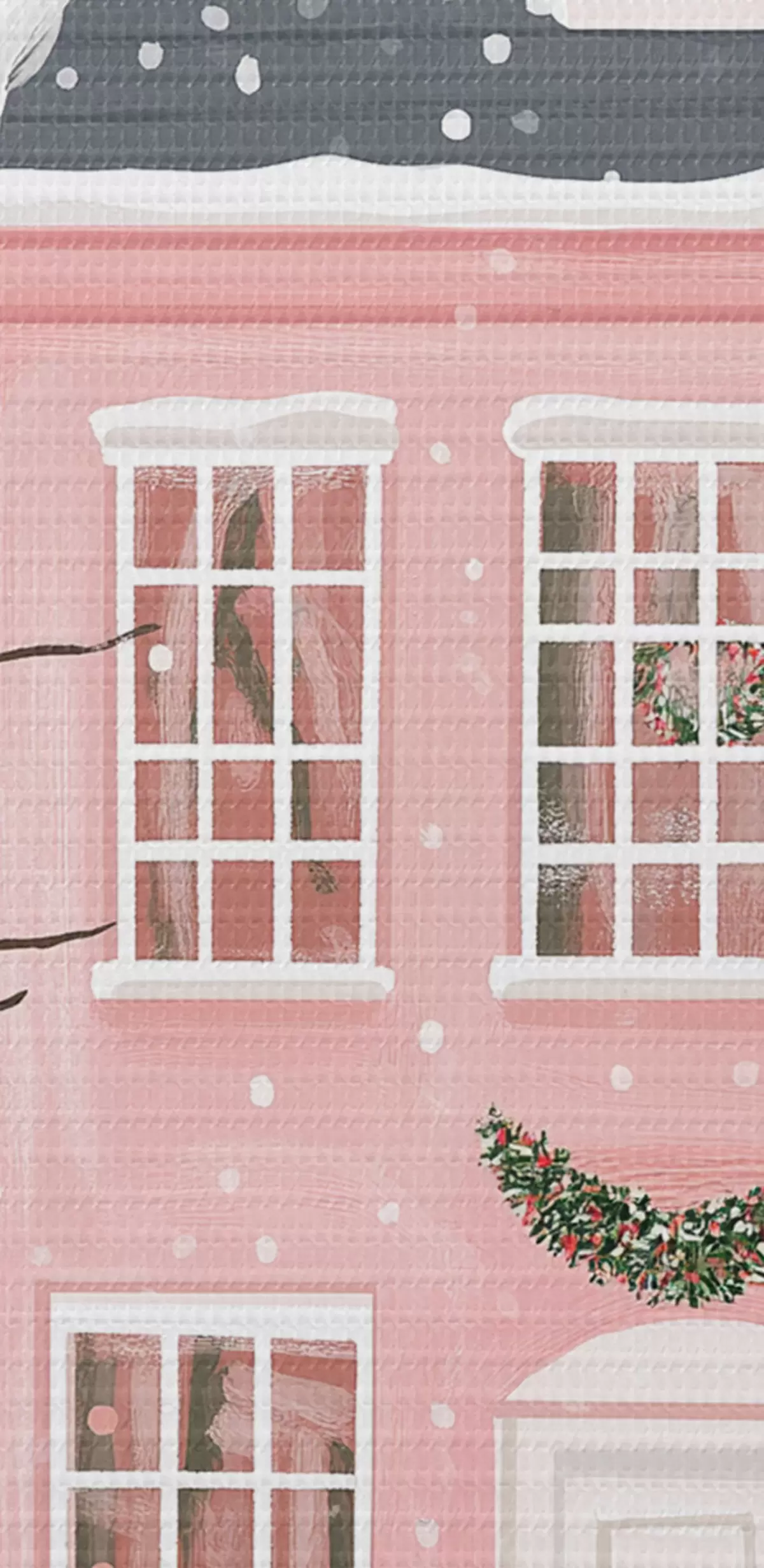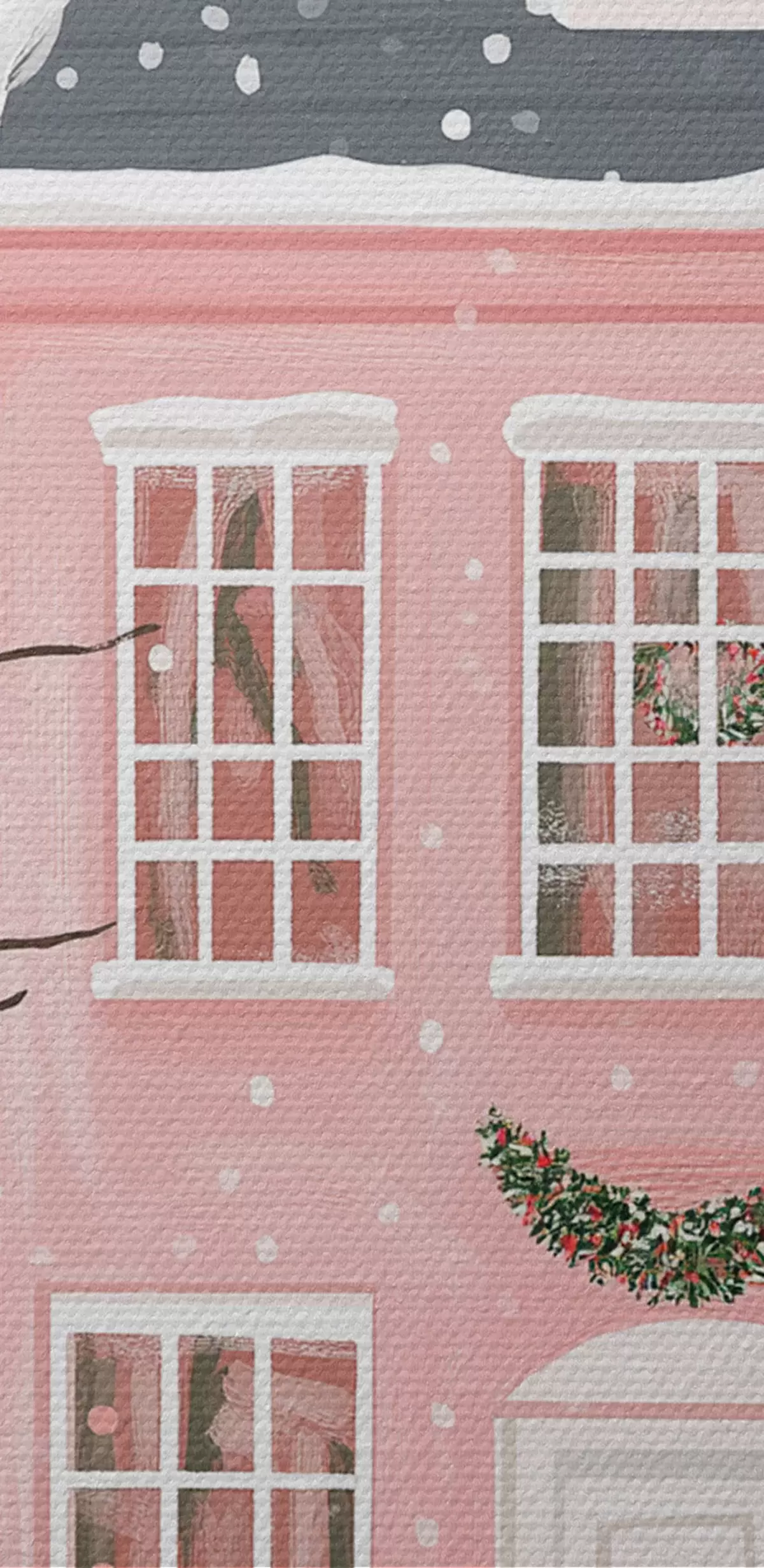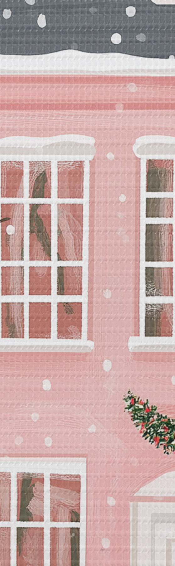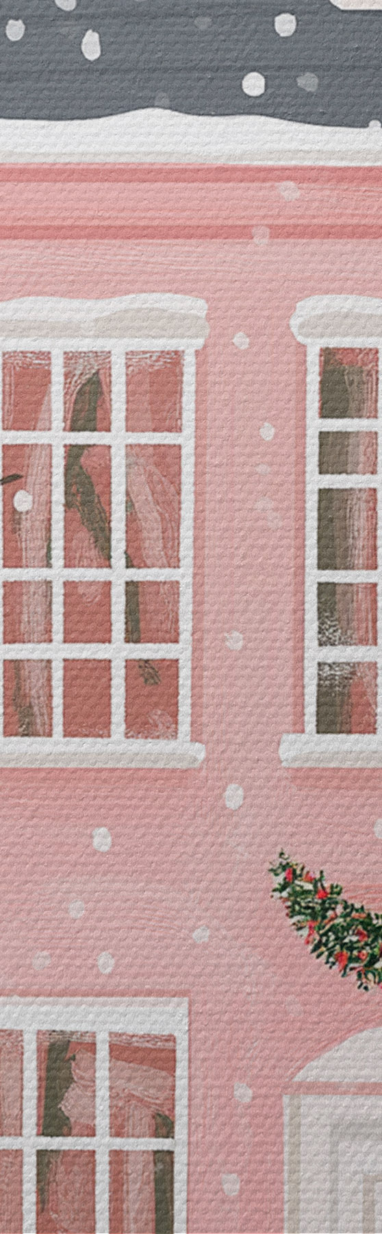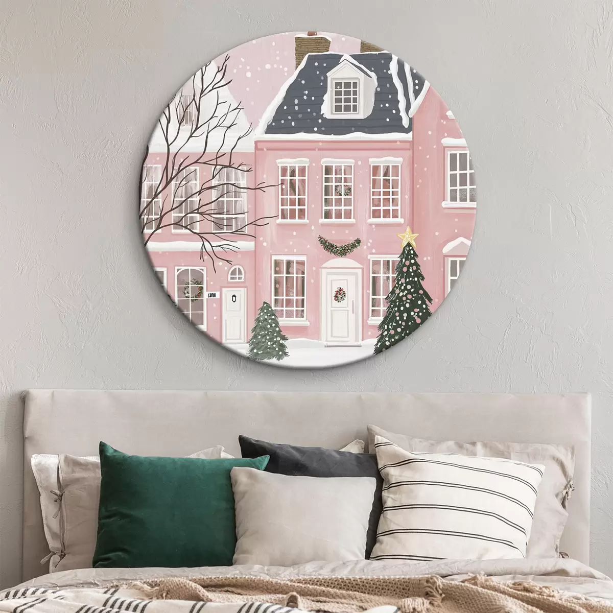 Кругла картина Милі рожеві будиночки, сосни, зимові пейзажі Nr r42791