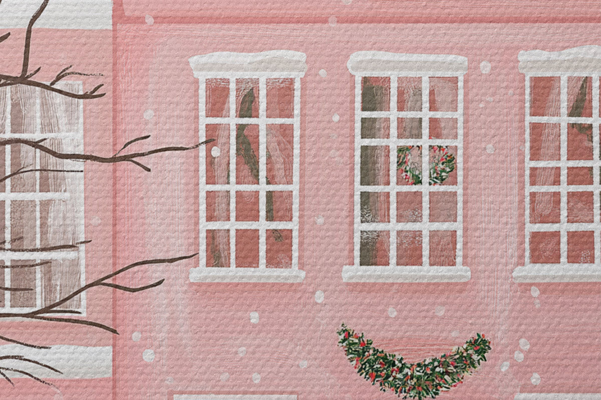 Кругла картина Милі рожеві будиночки, сосни, зимові пейзажі r42791