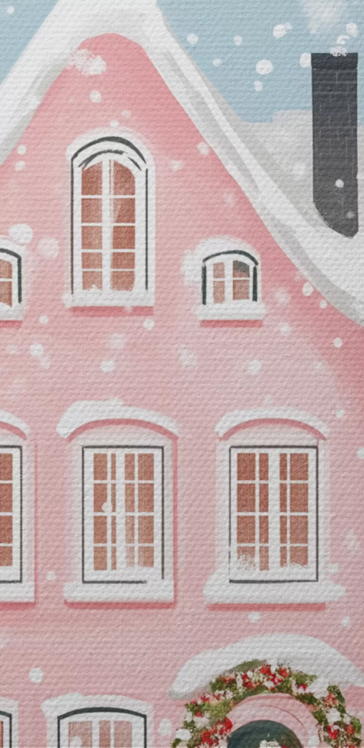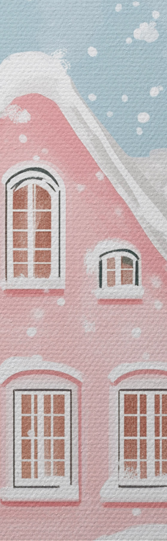 Кругла картина Гарне містечко з милими рожевими будиночками, зимовою естетикою, сніжинками r42793