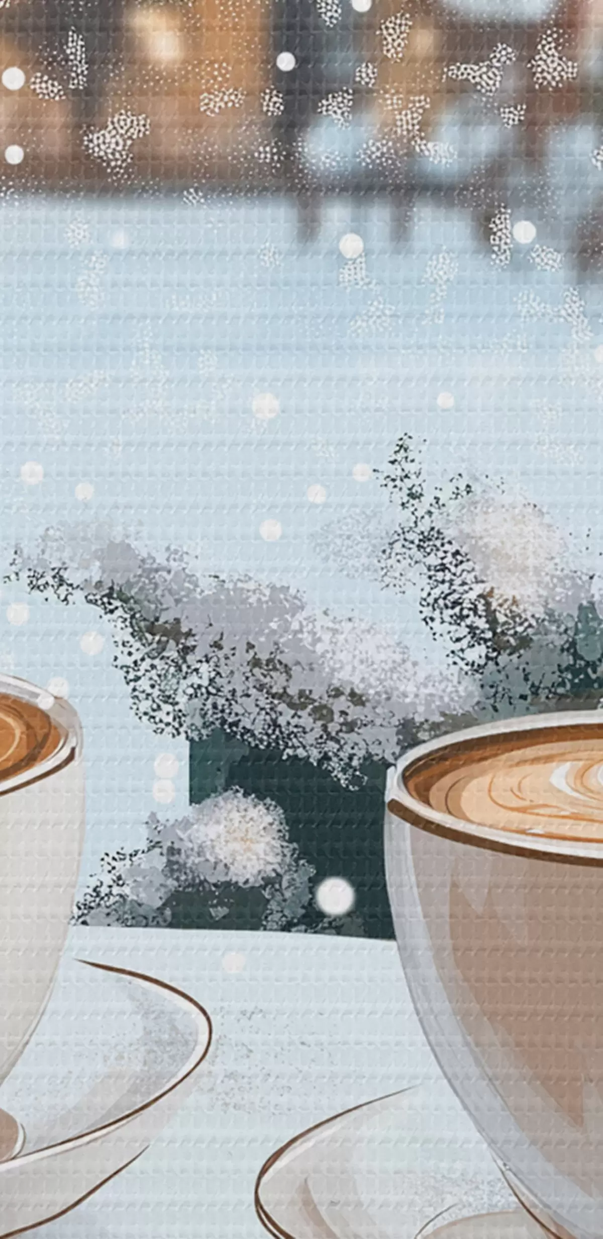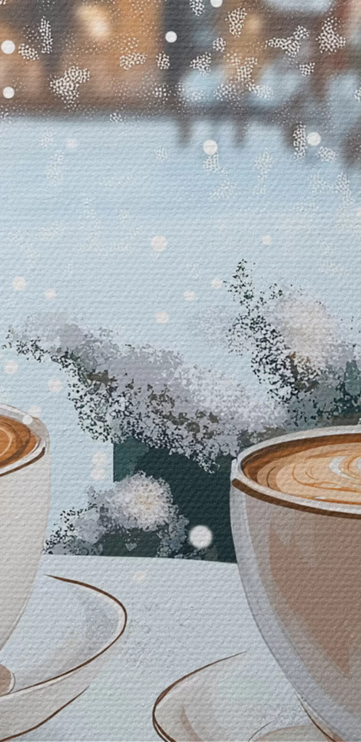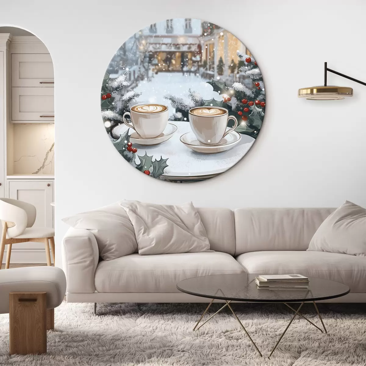 Кругла картина Філіжанка кави в затишній кав'ярні, зимова естетика, стиль бохо Nr r42797