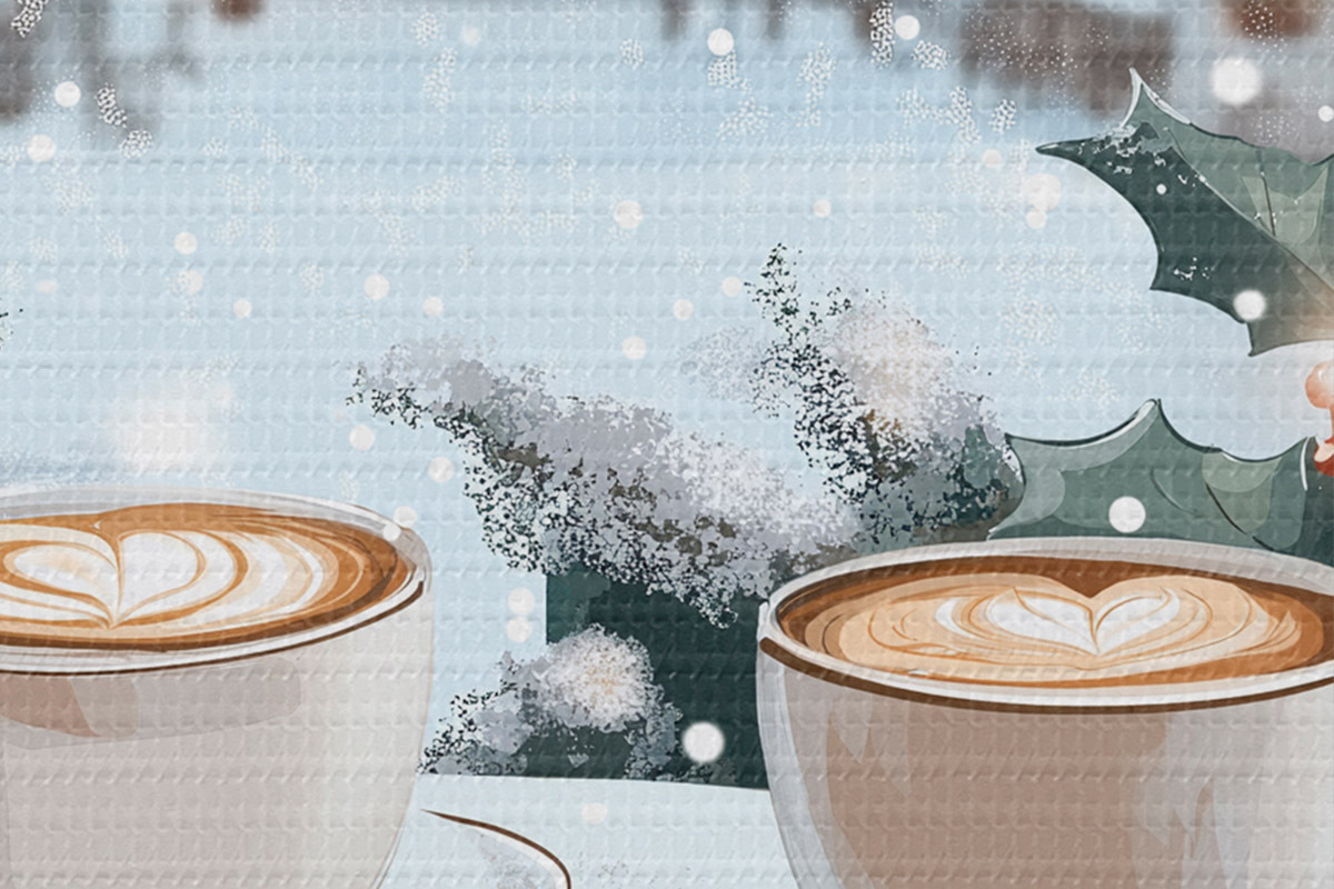 Кругла картина Філіжанка кави в затишній кав'ярні, зимова естетика, стиль бохо r42797