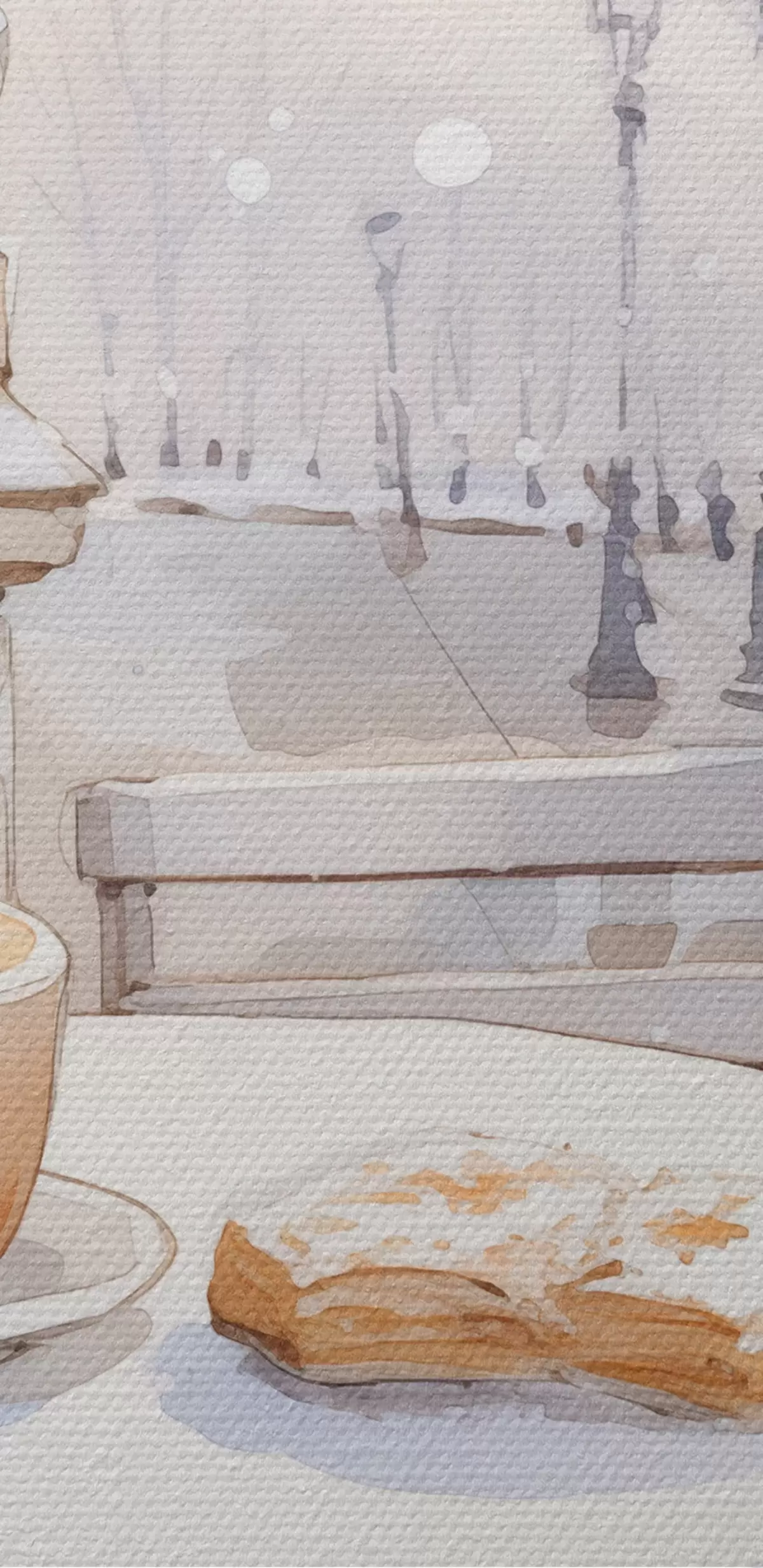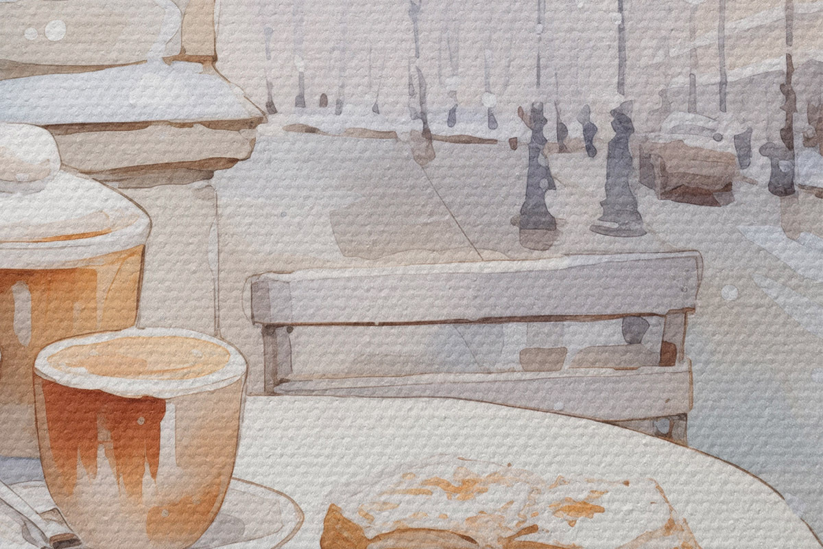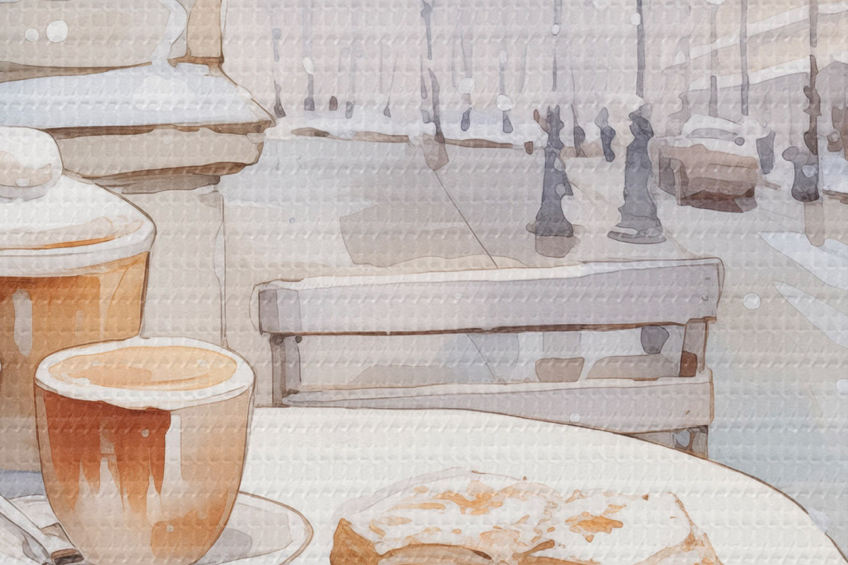 Кругла картина Естетичне вуличне кафе, Франція, свіжа випічка, акварельний малюнок Nr r42798