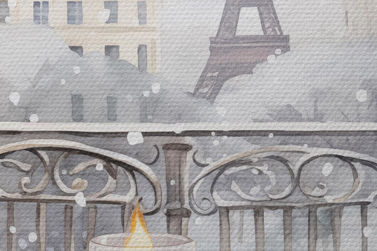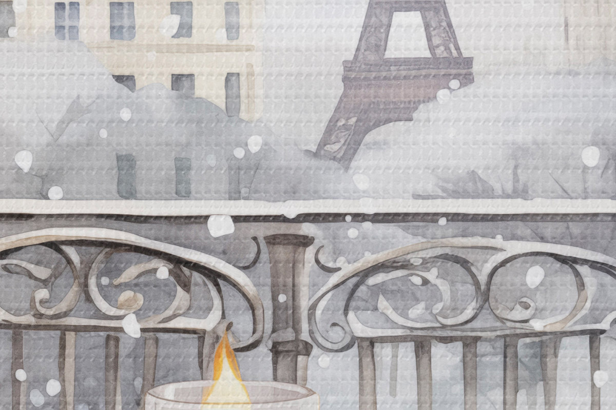 Кругла картина Красиве кафе в Парижі, чайні чашки, романтичний вид, зима, акварельний стиль Nr r42799